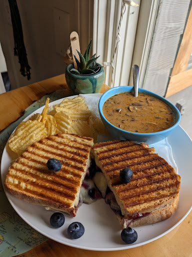 Read moreWow, I cannot stop raving about the incredible meal I had! It was absolutely sensational! From the first spoonful of the piping hot Hungarian Mushroom soup - the soup of the day - my taste buds were in heaven. And let me tell you about the Blueberry Brie grilled sandwich - it was a flavor explosion! Every bite was bursting with deliciousness, and the kettle chips were the perfect accompaniment. The service was outstanding, with big, friendly smiles that made me feel right at home. The cozy, charming atmosphere was the cherry on top of an already fantastic experience. I'm already planning my next visit, and I can't wait to try something new, although I secretly hope they have that delectable soup on...