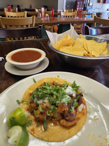 Hidden in a corner but caught it out of me peripheral. I arrived at opening and the place was empty but I was promptly greeted and seated. With menu in hand I was served a bowl of salsa and chips. The chips were okay, store bought. The salsa was fresh, tomatoee but had a nice kick to it. I set my heart on their menudo and also asked for 2 al pastor tacos. The server asked if I wanted cilantro and onions, to which I said YES. I killed the first serving of salsa, that was quickly replaced when my tacos came out. The Pastor tacos had an amazing flavor along with bits of pineapple (as it should) the tacos were in house made corn tortillas that made them even better! I devoured those bad boys and after a few minutes I was served my piping hot menudo. The menudo was CLEAN and very flavorful! I came out to me with all the fixings to include limes, cilantro, onions, jalapeños and my favorite dry Mexican oregano as that is how I grew up eating it in my home town of El Paso. I quickly tasted the juice to assess the flavor and it was perfect. The menudo was accompanied by home hot and hand made corn tortillas of which, I quickly sprinkled with some table salt and rolled it into a taquito and went to town on that delicious soup with beef tripe and hominy sprinkled with oregano and a couple of lime slice juice. I really enjoyed this place and would readily...