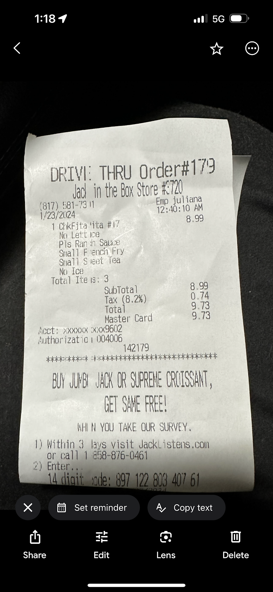 Read moreI wonder how many of these one star reviews are from first time customers? My degree is in Hospitality Management. I understand that everyone expects a certain level of service from a fast food joint. What I don't understand is people who leave a bad review on one visit and probably blow things out of proportion. I'm not calling anyone out and I know I probably shouldn't put this in my review but Jack in the Box is a fast food burger restaurant It is not a five-star dining experience and was never intended to be. Every time I go to this Jack in the Box... The service is impeccable. The staff is very friendly and the restaurant is always clean. There have been a few times where something was forgotten or I didn't enjoy what I ordered and I don't take that out on the staff. I wish I could review it a hundred times to get your review total backup to three and a half or four stars or whatever because I think that most of these reviews are unfair. Now for my actual review for today.