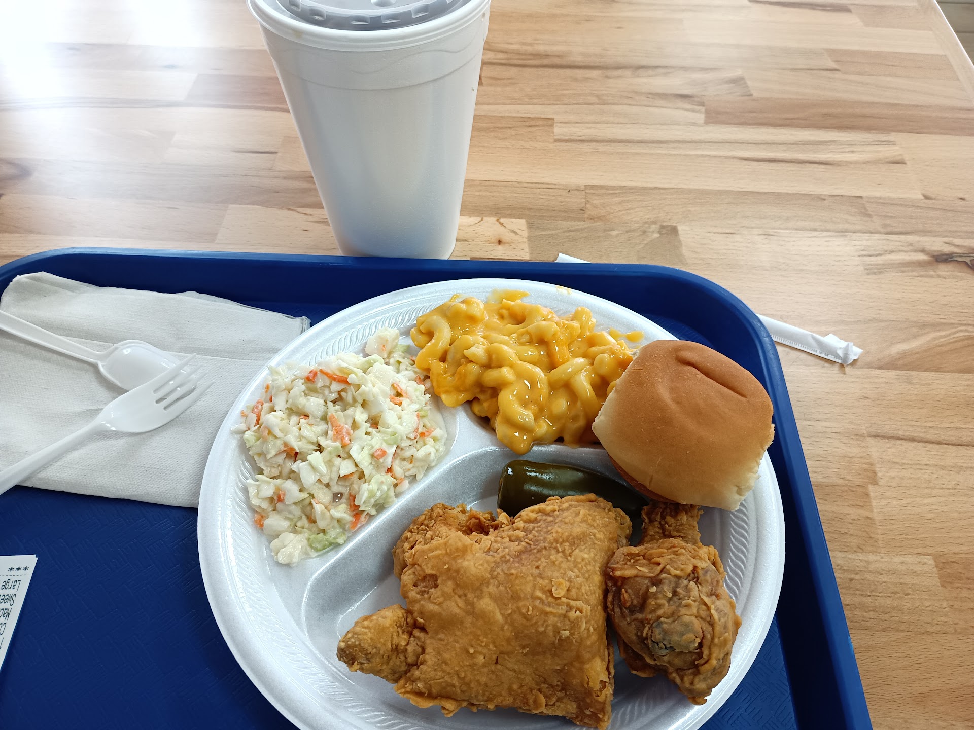 Read moreI had been waiting to try them ever since they put up their sign months ago. Finally made it. They close at 11p but at 8p they were already putting chairs up on the tables indicating they didn't want you to eat in. The good- The chicken and shrimp were fresh made instead of sitting under heat lamps. The fried chicken had a good flavor. The fried shrimp was a corn meal coating unlike most places. The bad- The have no fountain in the dining room so no free refills. They charged me $.49 for water without telling me, not free like EVERY other restaurant in the area. The rolls are packaged store rolls instead of fresh made like Chicken Express. And $1.39 for a small soda. Conclusion- There was nobody else in the dining room but a steady stream of cars in the drive thru. Guess if you take it home and don't get drinks you might be happier with them. Note- The pricing between dark/mixed/white was very inconsistent between the number of pieces. All white is much more expensive than other places. I'm ok that I tried it but rather...