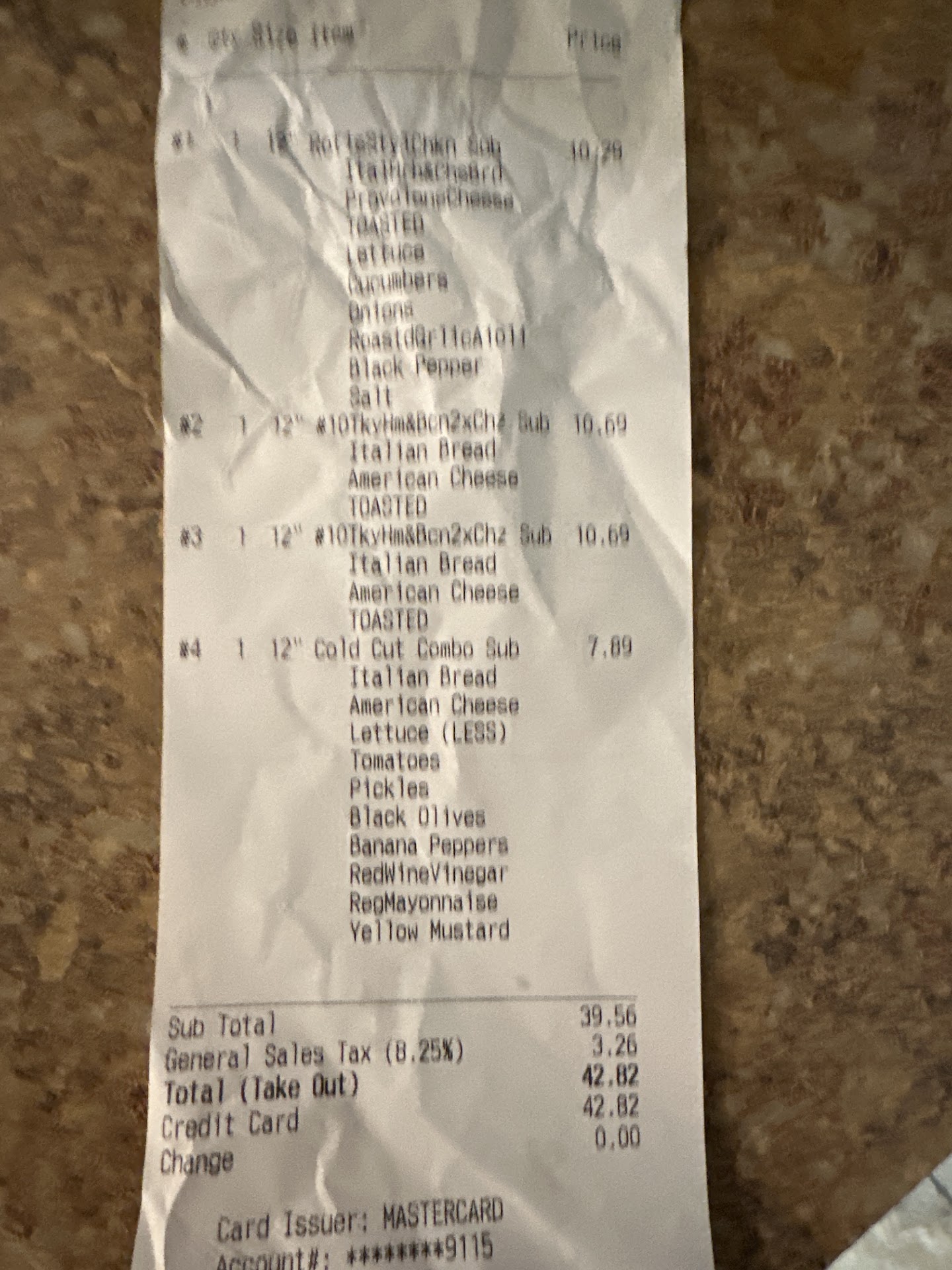Just so people realize how serious I am, I've ordered online 3 times from Crystal's Subway in a single week because I know she's going to take care of business. Please, if you read this, tip her as much as you can because she is...