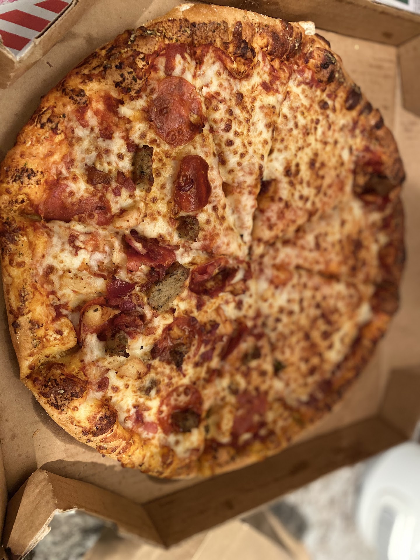 Read moreI ordered on their website and if you absolutely want Domino’s I would recommend ordering it through DoorDash instead of their app or through their website in cases where you might need a refund because the food is crap and you have to order more because the first order was uneatable. I made a complaint through the email and was only given two options 20% off my next order and a free pizza. I don’t want a free pizza or 20% off my next order. I want my money back. It’s $50 down the drain. Tried to call they refused a refund because it’s not “refund worthy”. In my eyes having to order more food because the first order was unable is refund worthy, but oh well. The worker was nice enough, however the second pizza was delivered to the completely wrong address so three stars...