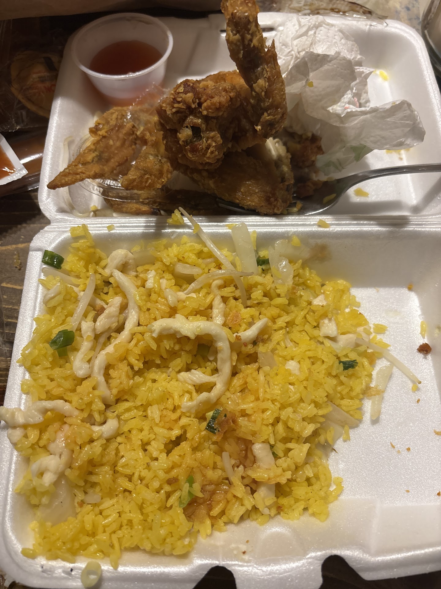 Read moreI spent $76 buying platters for my family. I have the chicken fried rice and chicken wings. The rice was disappointing at best. The chicken in it had a very suspicious texture to say the least. After getting over the look and texture of the chicken in my rice, I decided to have a girl at the actual wings. Unfortunately they tasted like burnt grease. I would like to note that the highlights of the night were the duck sauce and fortune cookie - both of which came from outside sources. Highland Garden, you’ve let me down if I could give your food a negative star I would. 😔 to end this on a good note I will say the service was great and the people were very friendly…