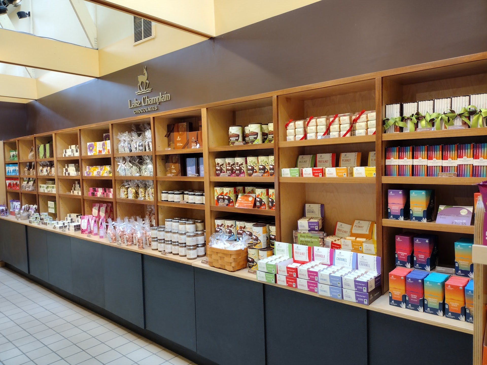 This is about as tourist trap as it gets. The Millennial Chum and I stopped in here on our way into Stowe this past weekend - I saw signs for cheese and chocolate and insisted this would be an ideal location for local swag (it wasn't; the mugs in the adjoining shop were $44. Insane.). This establishment is located in a building with several other stores, but it didn't take long for us to organically wander into this one. As mentioned in pretty much every other review, it's a lot to take in, chocolate-wise. There's a self-serve chocolate variety bin area where you can scoop out preferred flavors at $31/lb (yikes), along with tons of displays with wrapped bars and bags of individual candies. Unsurprisingly, there was a strong maple bent to a lot of the inventory.