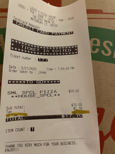 Ā Ā Ā Read moreI ordered from Louie's Pizza house weekly. I ordered a chef salad and a sausage pizza for later in the night. Salad was on spot as always full of everything the garlic bread was perfect. Later when I ate the pizza i bit into a piece that seemed to have several pieces of hair and wrapped around the sausage. I was ready to puke. I tossed the whole thing in the garbage. The next day when i called of course i had to get the rude women that works here. She is always rude and short with you on the phone she has even lied about the time in the past so u couldn't order food. Horrible employee. Right away she of course made u feel like u did something wrong and I was completely at fault for not saving the pizza to get a full refund the next day... That extra large box wouldn't even fit in my side by side fridge i told here and she said I should have used bags or something but i didn't so i cant give u a refund because we have no prof and people lie about this stuff all the time. So not only did she insult me but basically called me a liar. Weekly customer after 3 years you have no credibility with this women. So i asked for the owner to call me and she hung up on me. So i called back and spoke to the other female employee and asked for her to have the owner call me and no response. She was worried about the profit of a free pizza. Now she lost my weekly business which far exceeds the profit from one free pizza minus the hair ball. Imagine someone's hair being in your mouth and not even a simple apology. Amazing pizza normally, terrible...