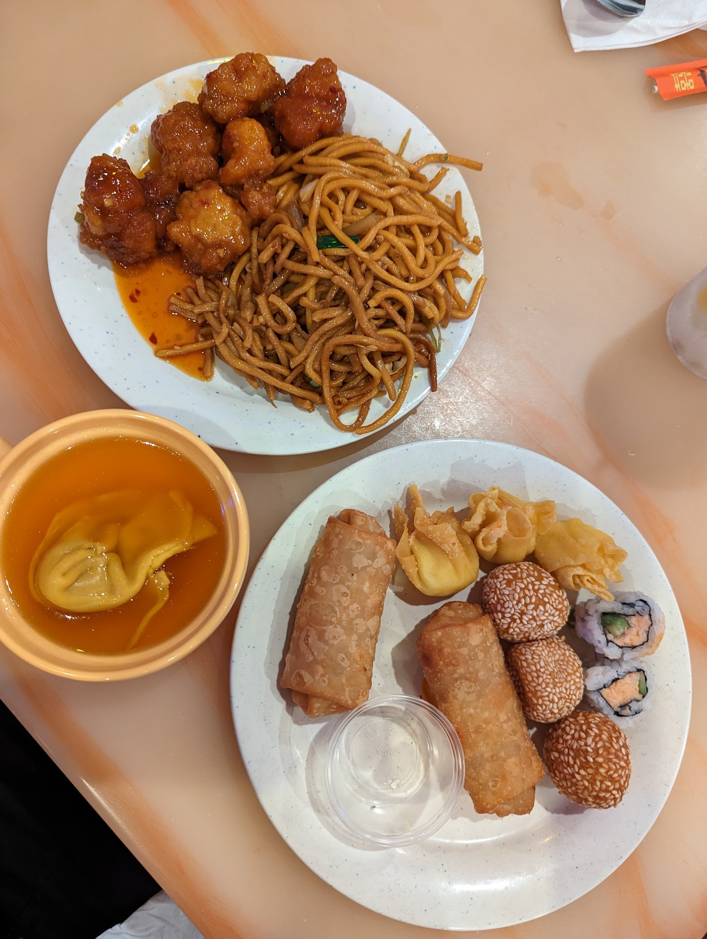 First off, the food. The food was alright. It was kind of cold when we got our first helping, but by my boyfriend and Iâs second helping, it was hotter. The best thing to me was the crab Rangoon, honey chicken, and the rice. My boyfriend liked the meatballs, wonton soup, said sushi was okay, and really liked the ice cream.