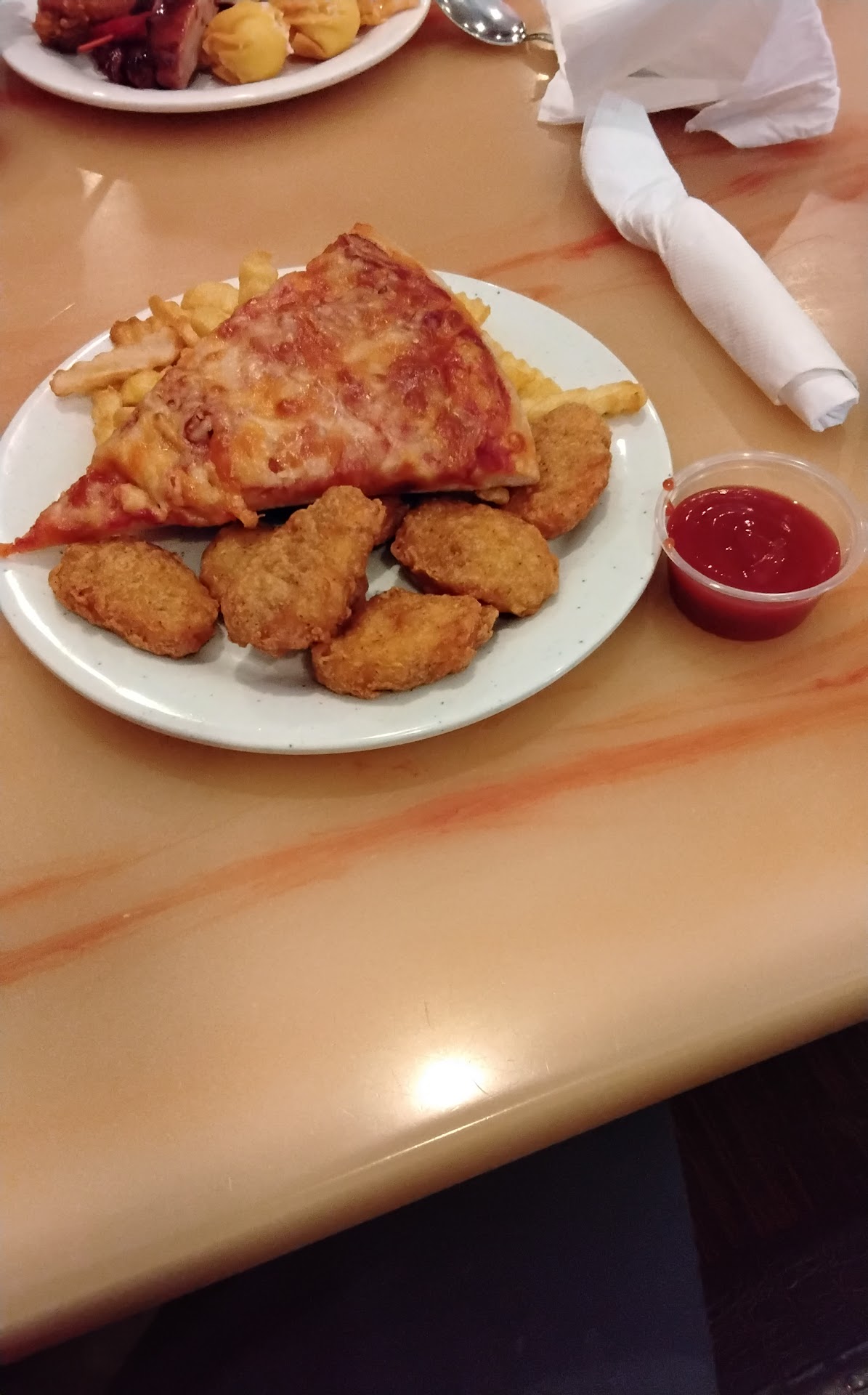 Aside from the hot Tea. . . Oh! And also, if you happen to go on a day and at a time when it is crazy packed and busy, and there are a swarm of families with kids, there, who are noisy, messy at the buffet, and have no table manners nor social etticate (but that applies at EVERY restaurant) then, I give this place gets a thumbs up (several of my friends and relatives do, too).