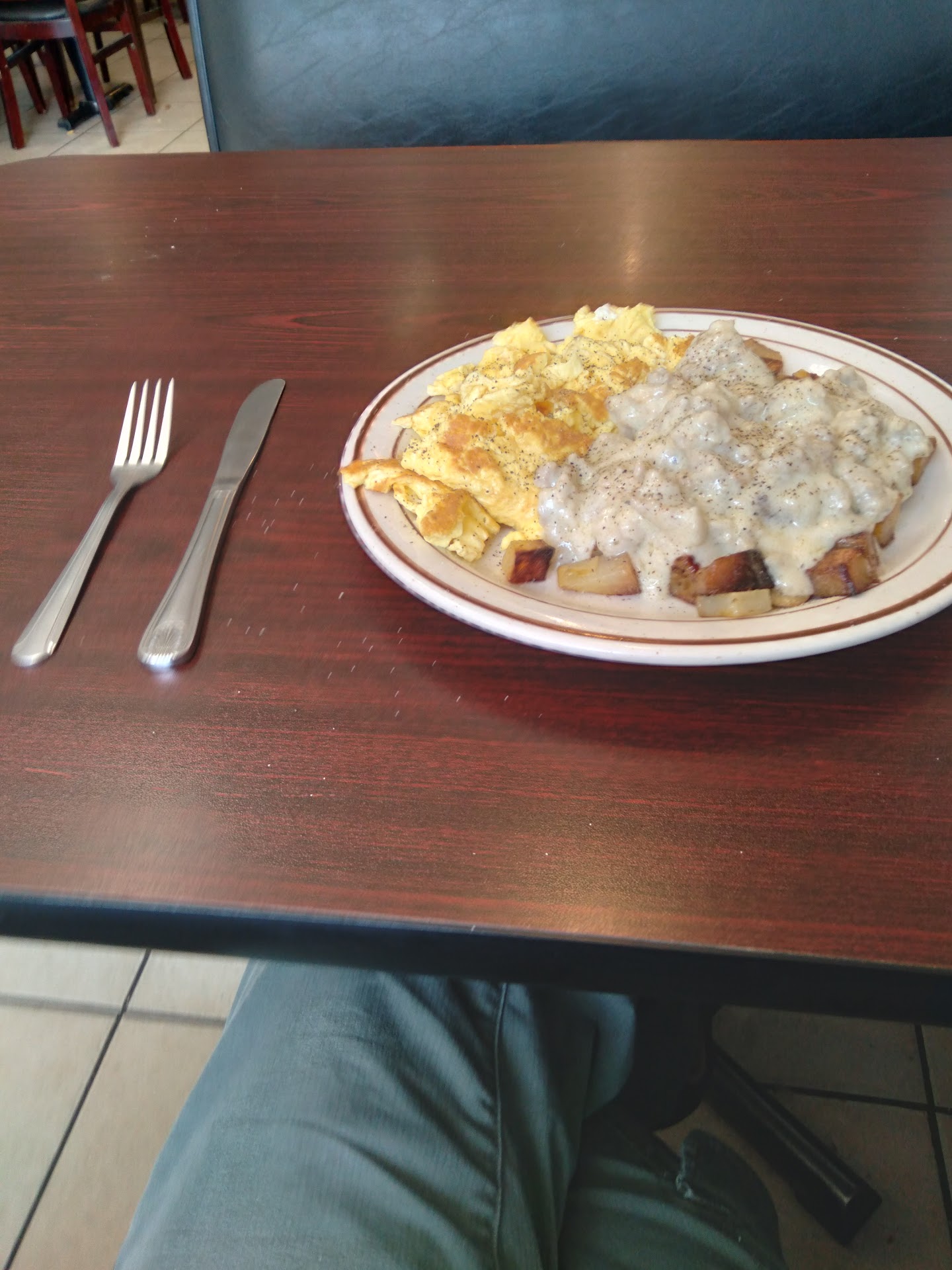 Read moreI am a big breakfast person and travel for work often, always seeking local spots. This place was the first in a very long time to get such a low rating. To start, I showed up and they didn't have coffee ready. Took about 15 minutes to get it which is unheard of for breakfast joint. That was actually the least of the problems. The woman that showed up started clipping her nails in the back, then walked behind the count biting the corners of her nails. I could hear her nail clippers at work and then she comes out finishing them off with her mouth. She then brought my super greasy and cold meal (coagulating on top - see pic), brought me silverware with her bare hands, and had to find napkins. I tried my hardest to get past the mental block but it was all too disgusting. The staff never came back from the back and I had already paid so I...