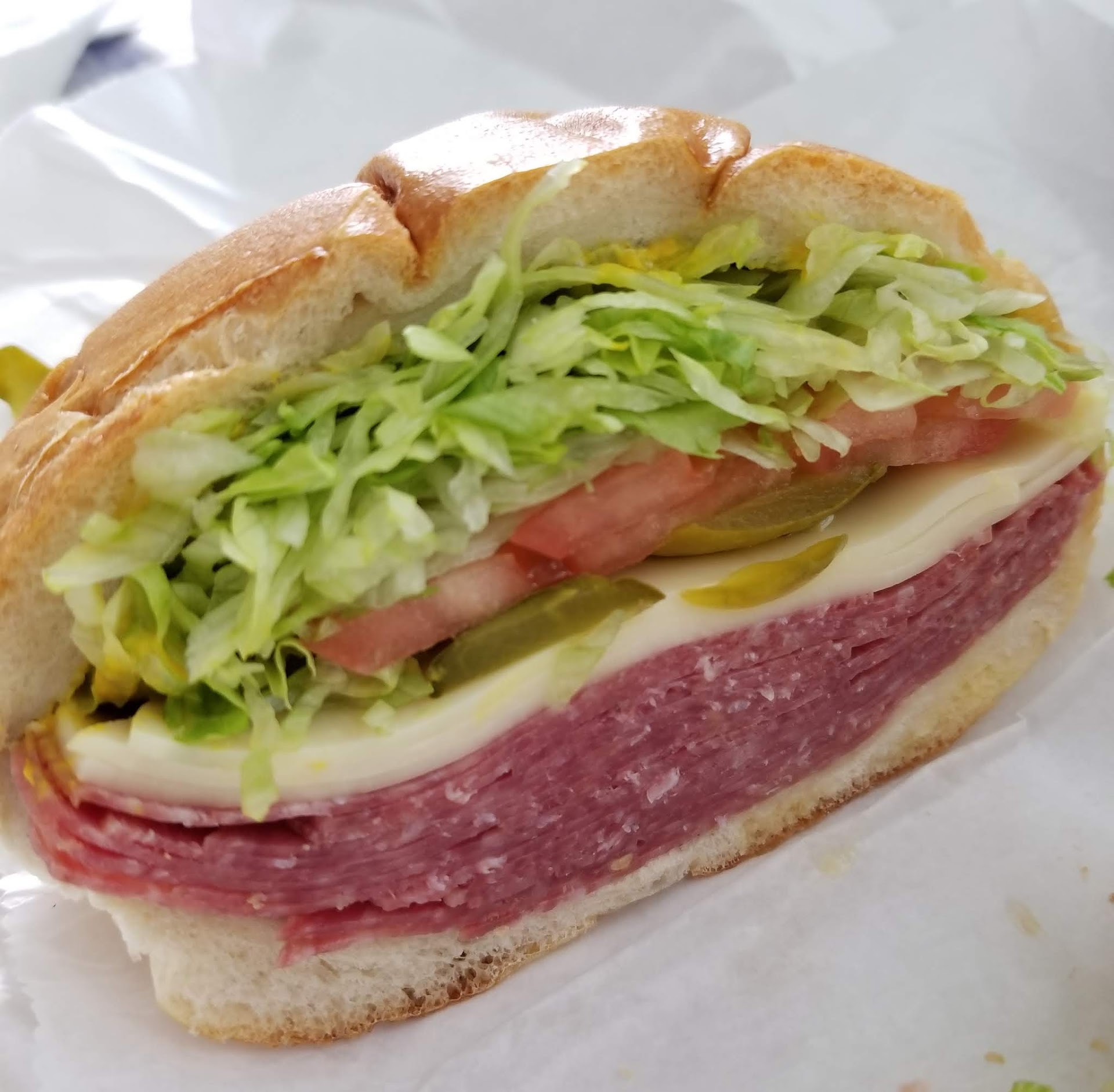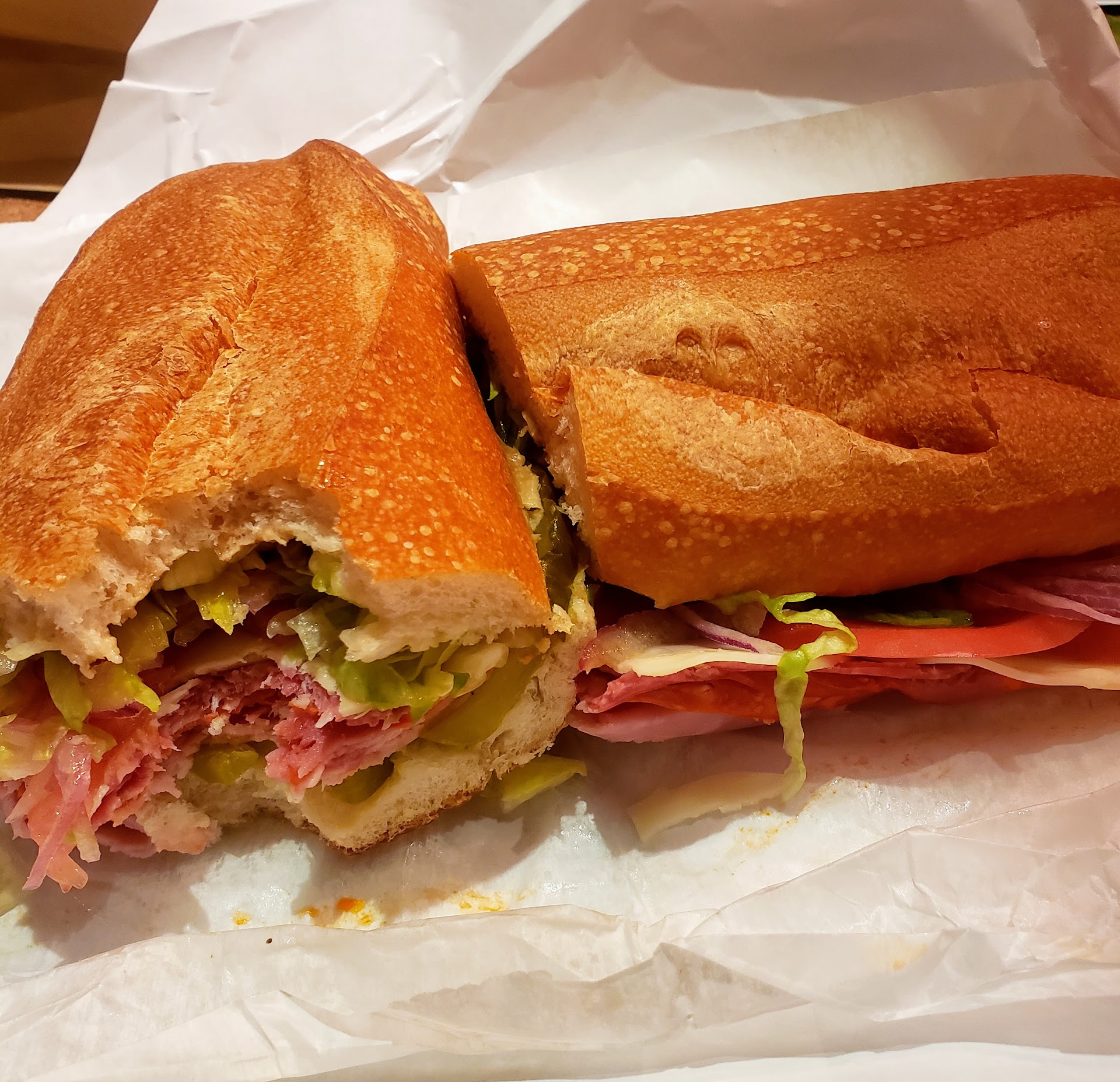 I got their spicy chicken tortellini pasta, macaroni salad, a large hot pastrami grinder, some cake, and a couple of cannoli.