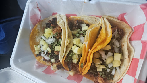 The reason is that their tacos are not skimpy meat pieces with the typical tomatoes, onions, and cilantro. The meat pieces are large, and they add in extras like pineapples and avocado! The tacos are so big, it's 2 on the bottom, then 3rd on top. First time in my taco eating experience.