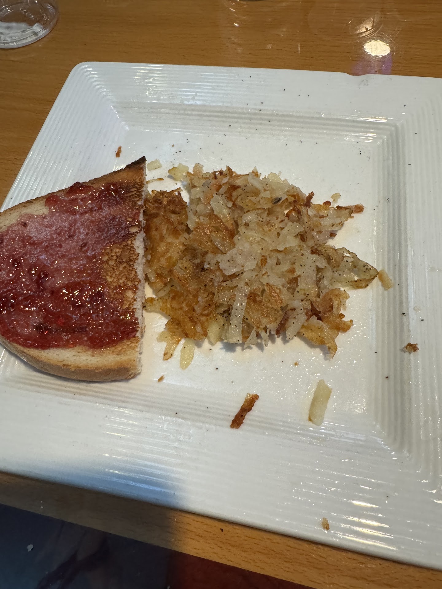 Well our food comes out… for $63 (tip included) we got very very very small portions. I ordered an omelette with hash browns. The omelette came out and the hash browns were still undercooked. They were like biting into raw potato. So those were sent back. When I got new hash browns, I got the TINIEST amount I’ve ever seen. I was given ONE tablespoon of hash browns that was smaller than one single piece of toast. So it’s obviously the cook was getting pissed.
