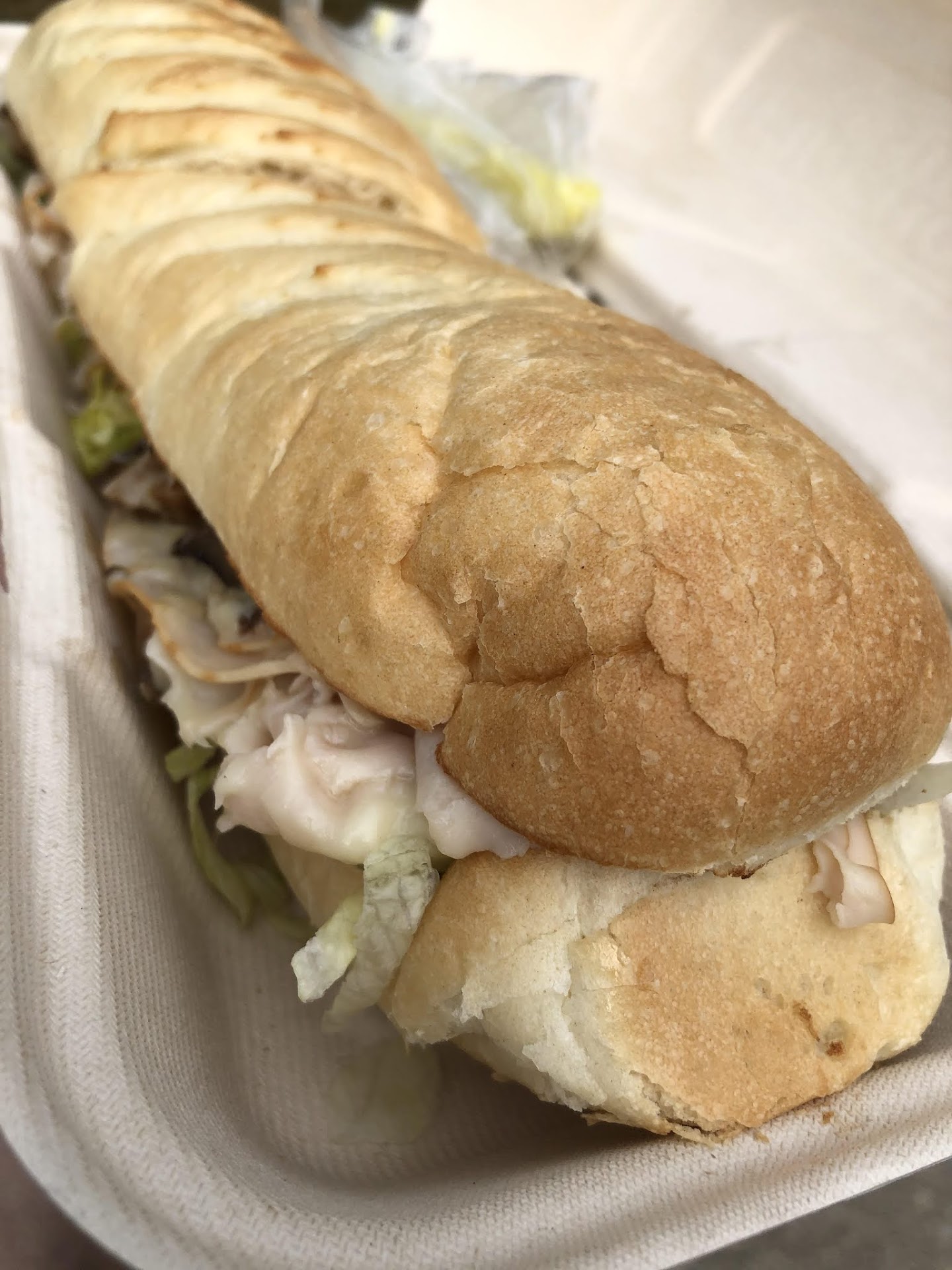 Read moreI really do not have too much to say here. I was not impressed with the sub I ordered/received. I ordered the Engineer sub, and the cashier originally took my order as the New York Steamer; I am not sure how the two sound similar, but it was caught before I paid and them making the order. The Engineer is a smoked turkey breast sub with Swiss cheese, sauteed mushrooms, lettuce, tomato, onion, mayo, and deli mustard. I ordered mine large, with no mayo. I did not order anything else except for the one sub.