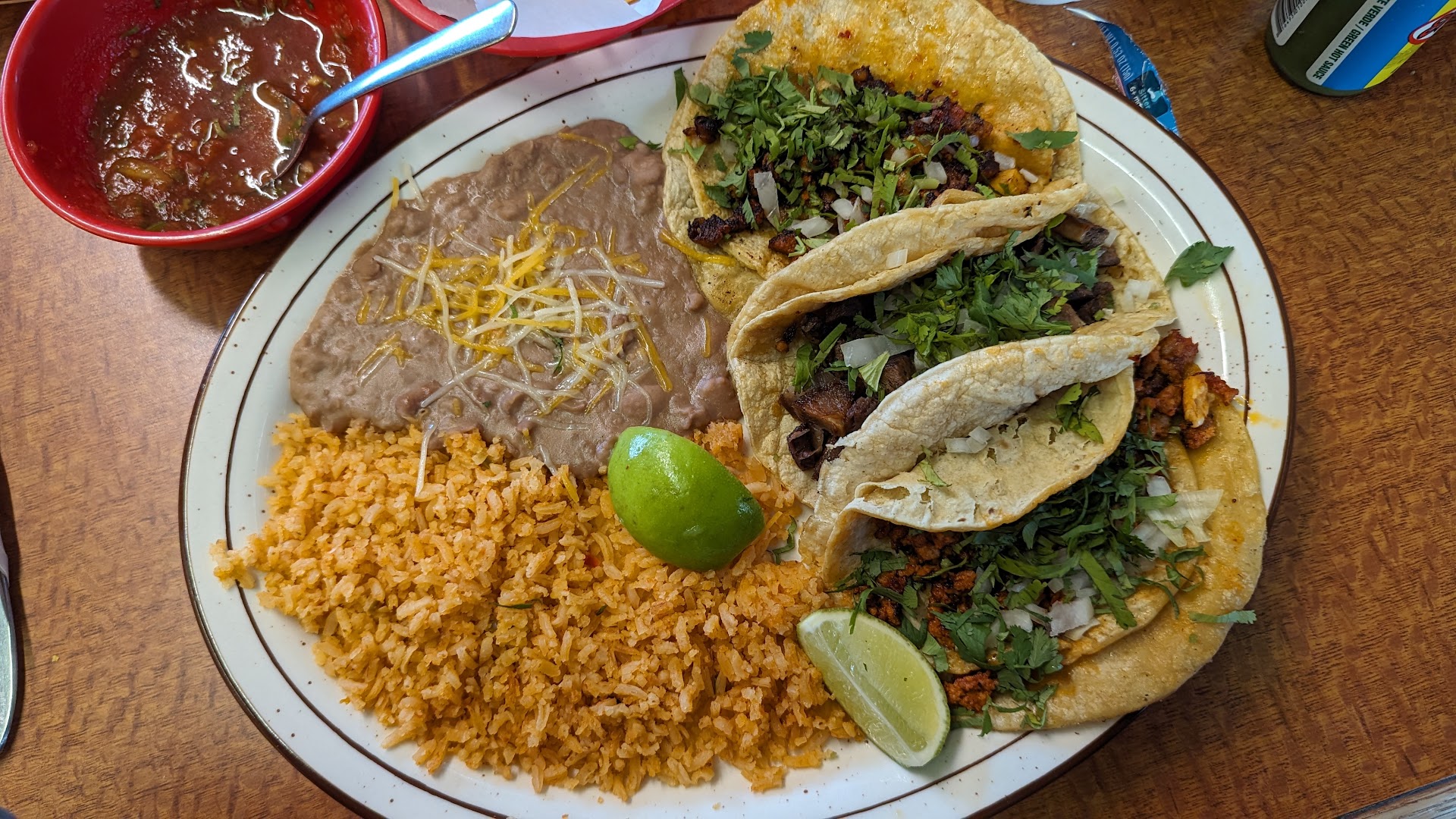 Chips and salsa: they bring out mild salsa initially, so make sure you ask for hot or green if you want some different flavor. The mild was a bit sweet for my taste.