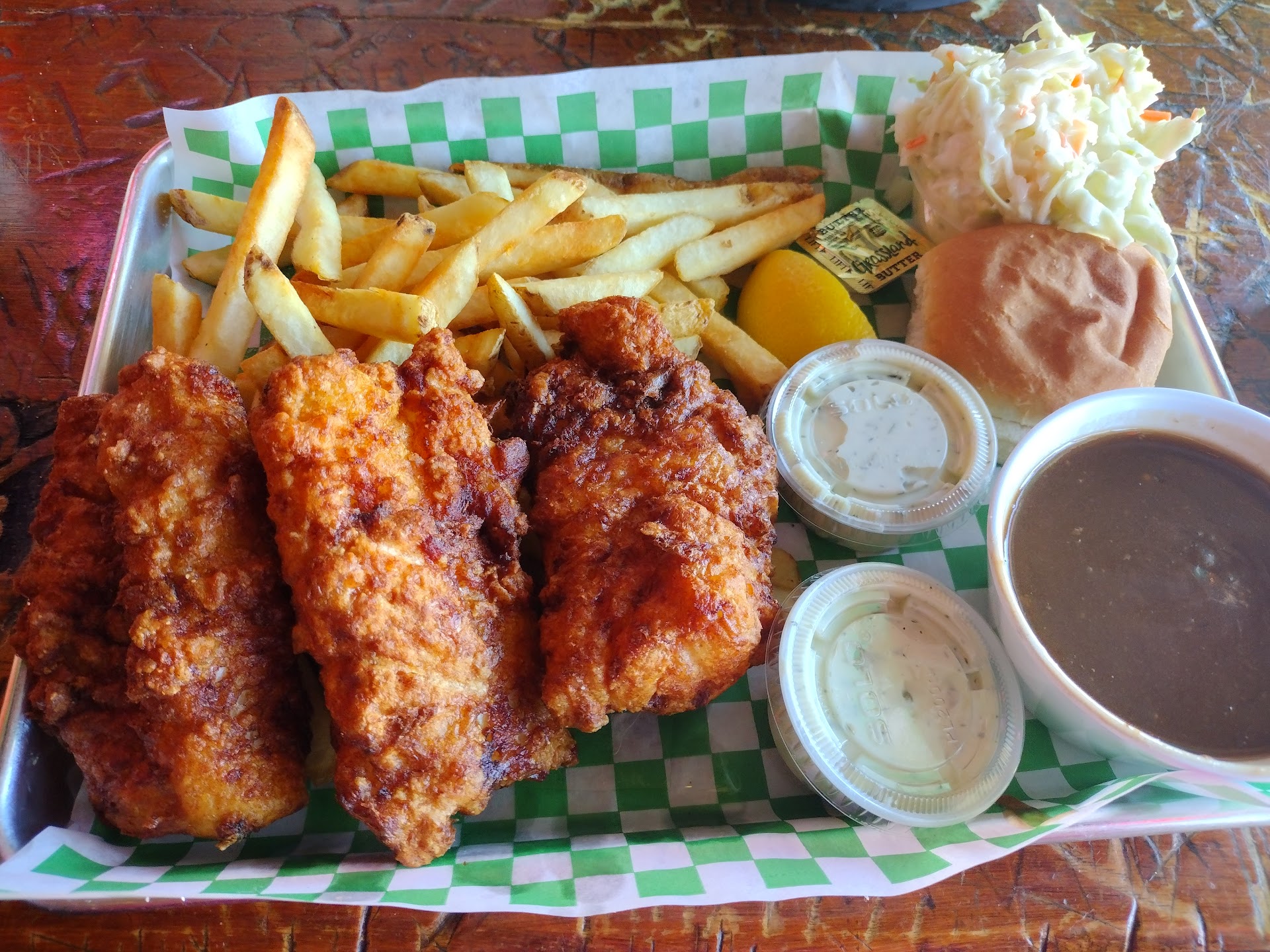 Read moreI've probably driven by Kennedy's Irish Pub oh my gosh over the years dozens and dozens of times I've never had the opportunity to stop in there but I did Sunday afternoon oh my gosh what have I been missing. I found out what I've been missing the choices were incredible and I finally settled on the burger section I got the world's most incredible bleu cheese sliced green olive burger! oh Lord, it was thick! The nice bartender that took my order over the phone, asked me, "how I wanted it cooked" + I knew when she asked me that, this was going to be a good burger! I got it charred rare just the way I love a burge,r and let me tell you the bun was incredible the burger itself was square and thick and not one bit of that melted bleu cheese and sliced green olives, came off, or out of that burger- while I was eating it! it is put together so wel!l Now it came with your choice of sides and I picked french fries and I highly, highly recommend Kennedy's Irish Pub's burger's if you've never had one. Next time I think I'm going to try their Shepherd's Pie ooh did that look good. As I said, the choices are several, in every category and it was easy for me to find the menu by googling it and I just loved it there it's got that great ambience and it's actually family friendly and my favorite part was the decor and the lighting I love a darker bar restaurant there's just something about it. The waitress/bartender who took my order, was very sweet and didn't tease me when I ordered two sides of mayonnaise for my French fries although I'm Irish I'm -I'm also half English and that is healthy English eat their French fries ,which was sweet of her-she said no problem we have a few people that eat them that way so I wasn't embarrassed and my food was hot and ready waiting to go for me and I grab that and my tall Coke and just had an incredible hot delicious dinner in the car and loved every minute of it till next time...