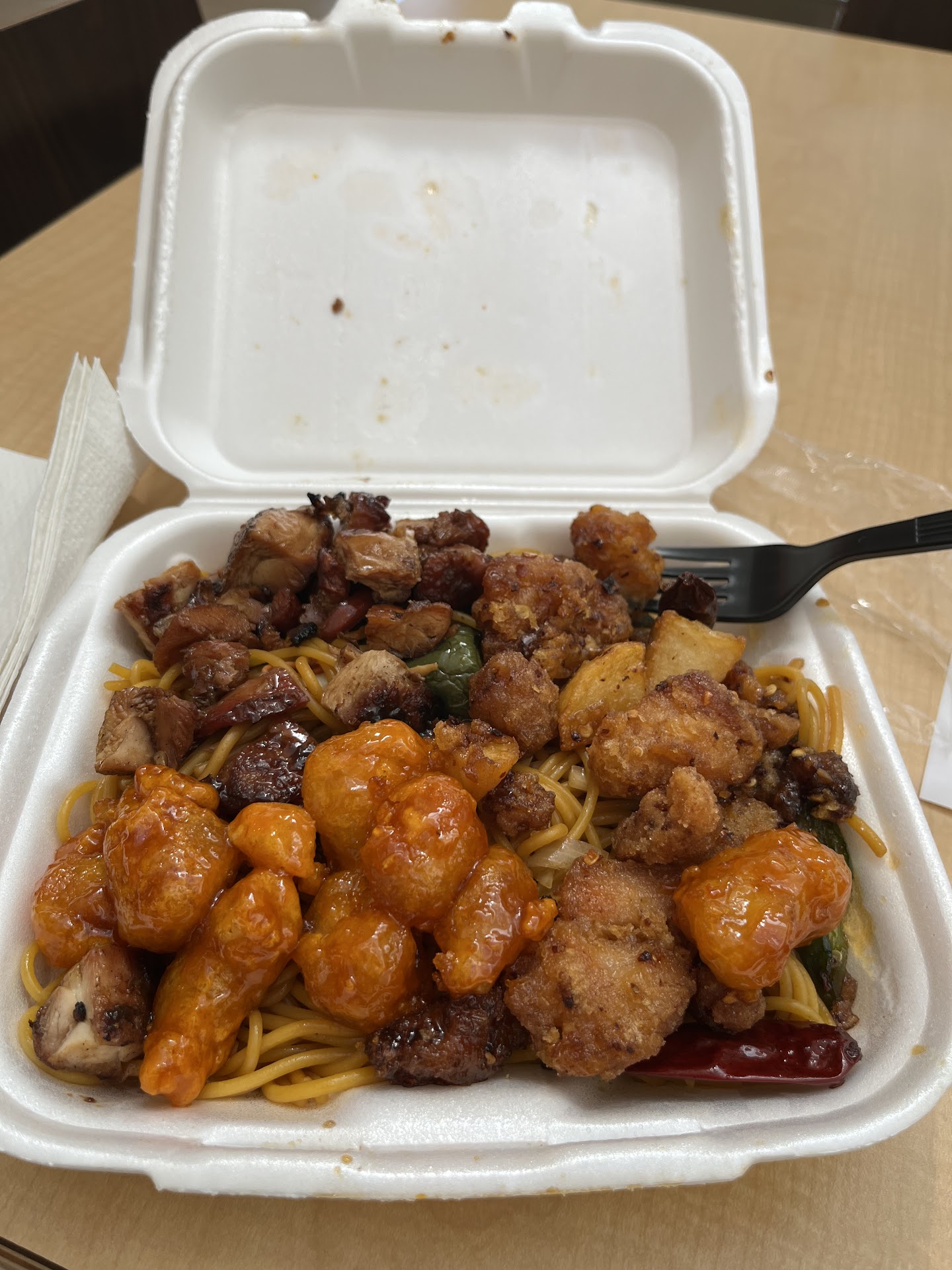 Read moreI have had their samples in the past that were tasty, meaty, and so forth. But, I was there the other night 🌙. They had a $7 special. I got lo-mein with three meats. The orange chicken and general tso's chicken were nothing like past samples. They were not as flavorful and also something much worse: they were so oily that if squeezed, oil drenches out! The lo-mein was also especially oily, but it was so bad with the breaded fried food. I have eaten Chinese take-out at many places for decades, but nothing like this before. And there's more: many of my pieces had no clear or identifiable chicken inside of the breading. It was like I was getting deep fried breading with possibly some bit of chicken somewhere in the batter, and yet more oil than I could have ever expected. I don't give him a one-star because I know at least in the past they have done better. But of course that meal was easily...