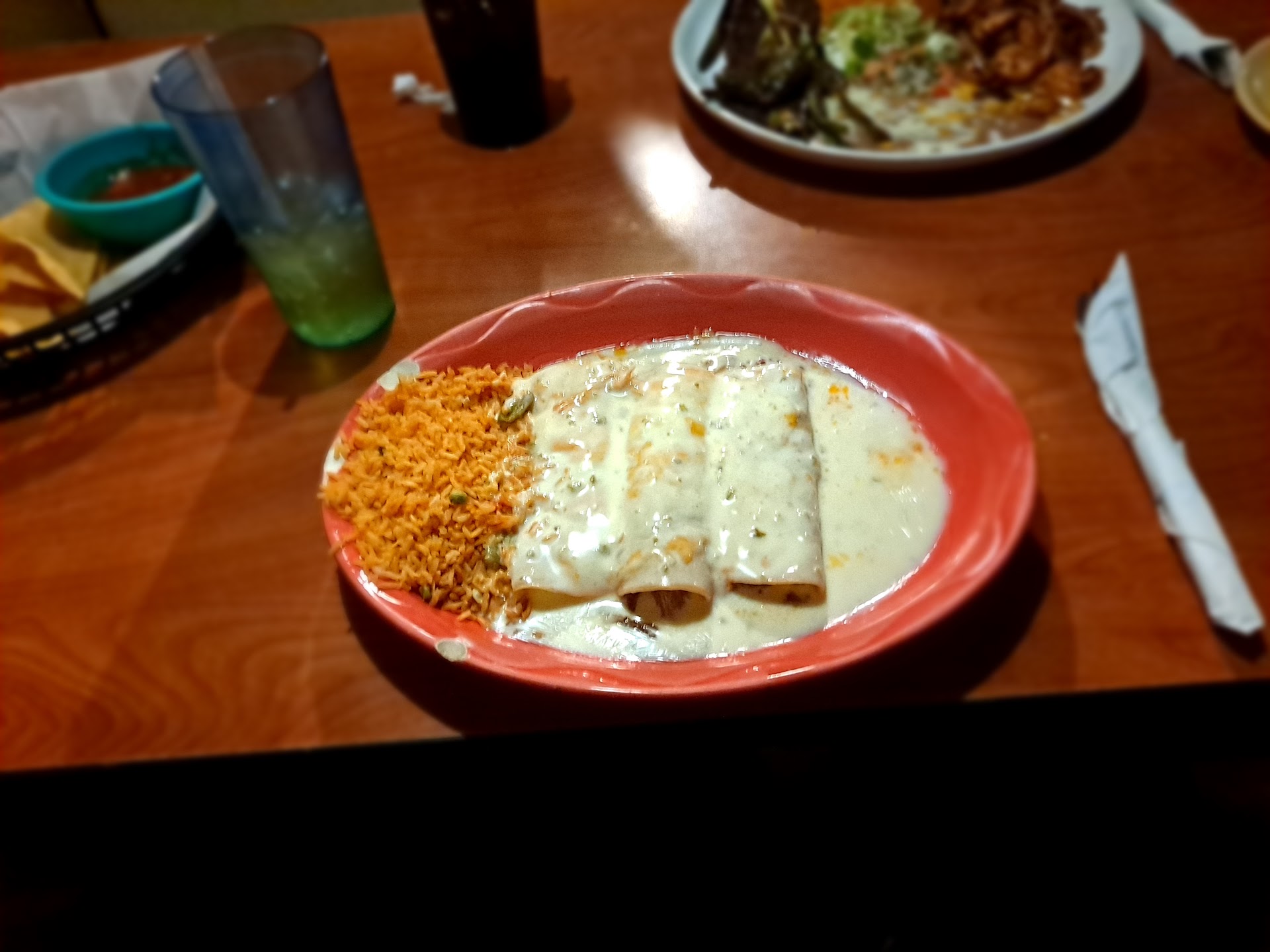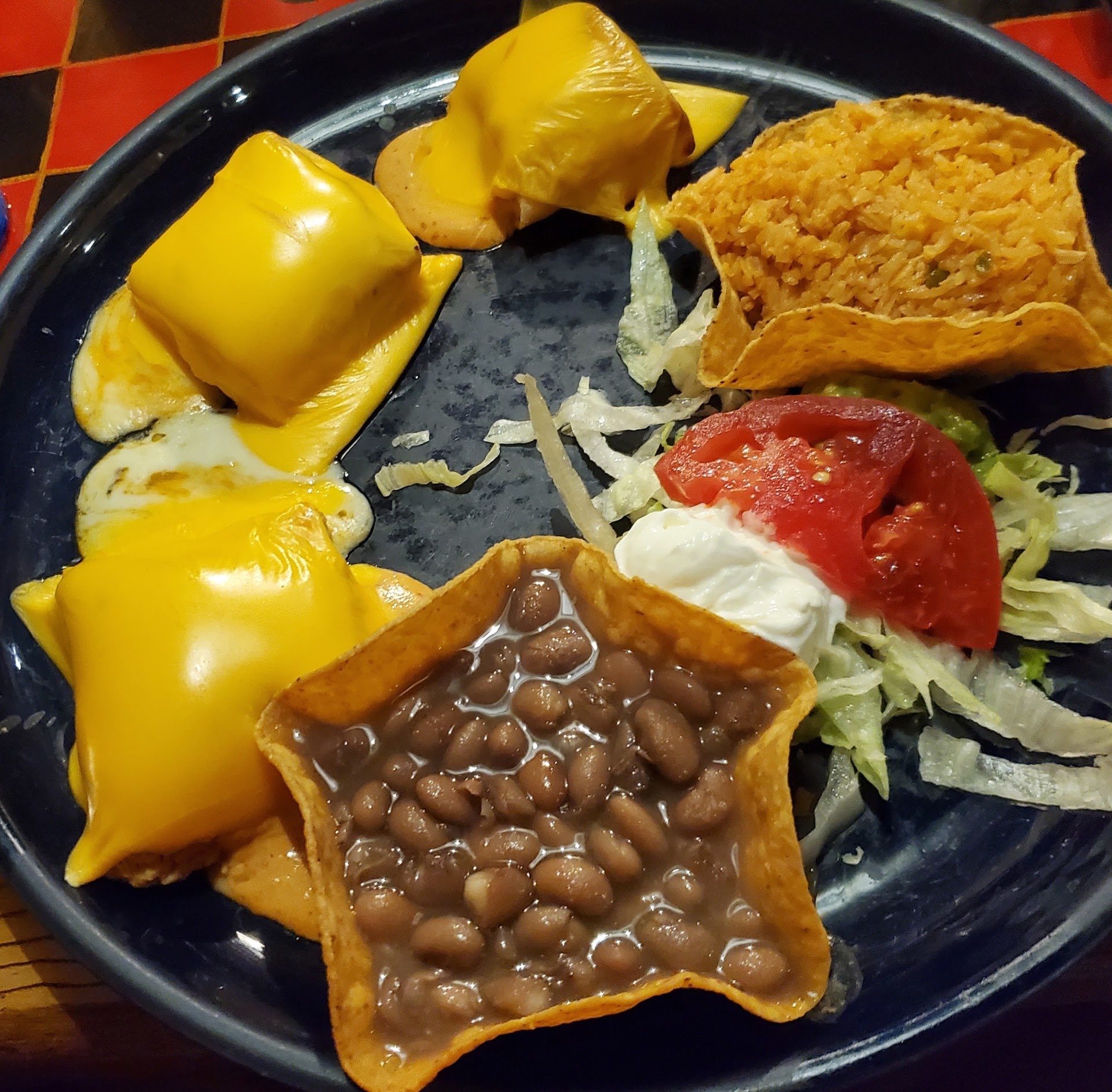 Read moreThe food is good. I ordered the Chimichanga/Enchilada dinner. The Chimichanga was chicken and the Enchilada was shredded beef. I had the refried beans and the rice. Sour cream and guacamole were included. While the Chimichanga was cooked perfectly and had a great flavor I cannot say the same for the shredded beef Enchilada. The beef tasted like Bar-B-Q beef. I even had my friend taste it and she agreed. I also didn't care for the salsa. Although the flavor was okay - not the best - it was too spicy for me. I like to enjoy my salsa without my mouth being on fire and having to take a drink of water after each bite. When I asked if there was a milder salsa the waitress informed me the only other one they have is even spicier. If they had better salsa I would enjoy their food better and give them...