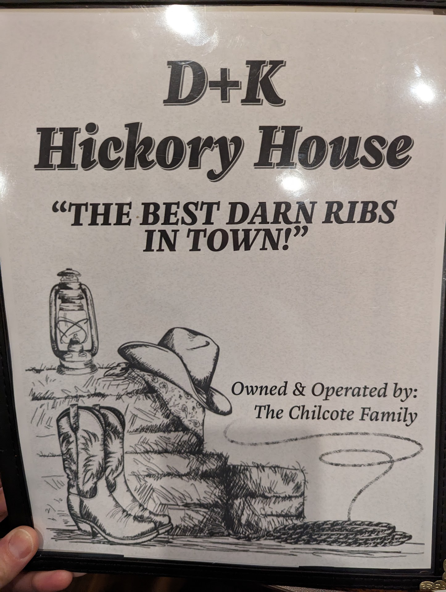 I am not rating my own family's restaurant, so ignore my rating, thank you all very much :) Mr. Bill Benson, I would just like to write to you. I fully and completely respect your opinion, but I would just like to say that you are assuming things that are untrue. Not a single person from our staff has posted such things about our restaurant. We simply do not do it. This is the first post by any of the help. So, I would like to say to you, please get your facts straight before you start writing things, especially on a place you know nothing about. I DO NOT, appreciate you insulting the owners. The owner is my grandmother and she is a very hardworking woman. She does not deserve to be spoken badly about. If you insult her, you insult the rest of us. No one talks about her like that, and especially someone who does not even know the woman. Also, we are NOT a BBQ place. We are an American Style Restaurant and our specialty is our BBQ Ribs. We are NOT a BBQ place. I am sorry for your "awful" experience. I wish it could have gone better, but hey, different strokes for different folks. Some of us are just nice about it! Bless you kind people. Anyway, Bill you should have told your waitress about your story and we could have fixed you up a little better. (We see this a lot, many customers will not complain in the restaurant but do it on the internet.) Our chances of improving dramatically increase if you tell us about it in person. Chances are, your experience will turn out better than you expect, simply if you complain. We care about our customers and we want you to have a positive experience! To the rest of you, thank you for your comments! We greatly appreciate it. We will work on our flaws. Stop in at D+K Hickory House! We are open Tuesday - Saturday at 4pm! We close around 10pm on the weekends and in the week 9pm. ALSO, we do not take credit cards because we never have. We have an ATM, or we take cash or check. Just to let you know ahead of time! But we also have signs up letting you know, no surprises! We hope to...