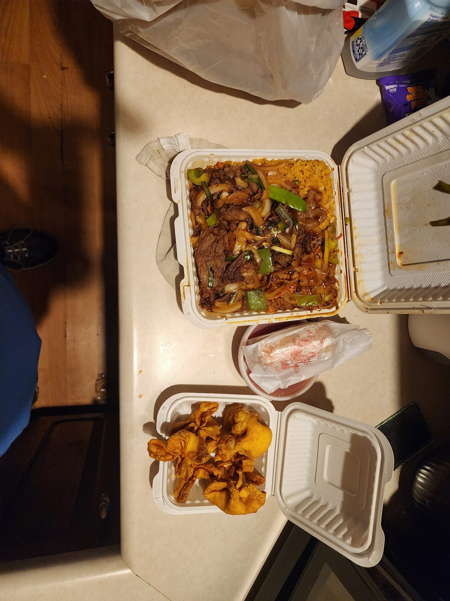 Read moreIt's ok. Got take out. Tried the pu pu platter. It comes with two wings, two beef eggrolls, two crab rangoon, two pork? wontons, two butterflied fried shrimp, two chicken skewers, two beef skewers, and shrimp toast, but I requested the veg eggrolls instead. The chicken wings were big, decently seasoned. The beef eggrolls are old school but kinda dry. Maybe too much cabbage. The crab rangoon were ordinary. The fried wonton had an aftertaste. The shrimp was good, with a decent shrimp to breading ratio. The chicken skewer was overcooked. The beef skewer was flavorful but overcooked. The veg eggrolls were spring rolls, standard white sauce mushy filling. I also tried the potstickers. They are not Japanese gyoza. They have a nice, chewy wrapper. They seemed homemade. The meat could use more seasoning. Not sure if...