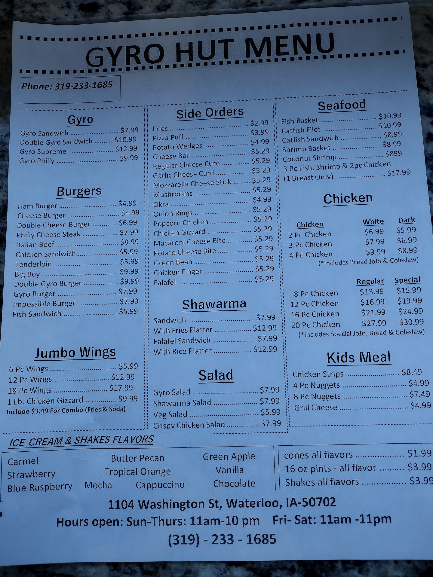 Read moreMy family has been dining here for years, absolutely loved their big boys and my husband loved their chicken gizzards. Last time I ordered I was sent something completely different than what I asked for. I gave it the benefit of the doubt because I loved their food. This time once again my âbig boyâ arrived in no way like it has always been made for the last few years. There was no zeke sauce like they always had on it, no veggies to speak of. It was covered in green peppers and was so dry!! it was more like a gyro burger than what i ordered. my husband's gizzards (of the few he received. the portion was ridiculously tiny!) they were mummified. (Over cooked). his sandwhich was also dry and he couldn't even finish it. Very disappointed. They will be losing some long time customers. we will be going elsewhere from now on. Spent over $70 to practically...