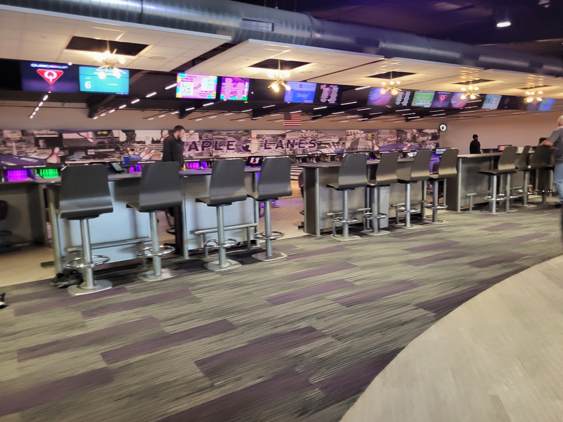 We had an extremely disappointing experience with King Pin Restaurant Maple Lanes, first off when we arrived, there was no one else there in the restaurant and it took over 15 minutes for the staff to even acknowledge us and come over (and they all saw us and ignored us) finally one came over & took a drink order, after our drinks arrived and we ordered appetizers, the waitress asked us to move to a different location due to a party coming in, they should have had reserved on the tables & they did not, headed upstairs and most tables were reserved up there, waitress seemed really confused with orders for larger parties (8 of us so not really big), forgot drinks, forgot getting us water, the entire process of ordering was a disaster, when food finally came - it was cold, no refills of waters or drinks unless asked multiple time and she still kept forgetting, waitress messed up payment with different credit cards and put all the order on one credit card then the next day saw that our credit card was charged too, waitress was apologetic and seemed really flustered, there appeared to be plenty of staff there, food was subpar. The entire experience took us 3 hours to order, get our food and pay! Poor...