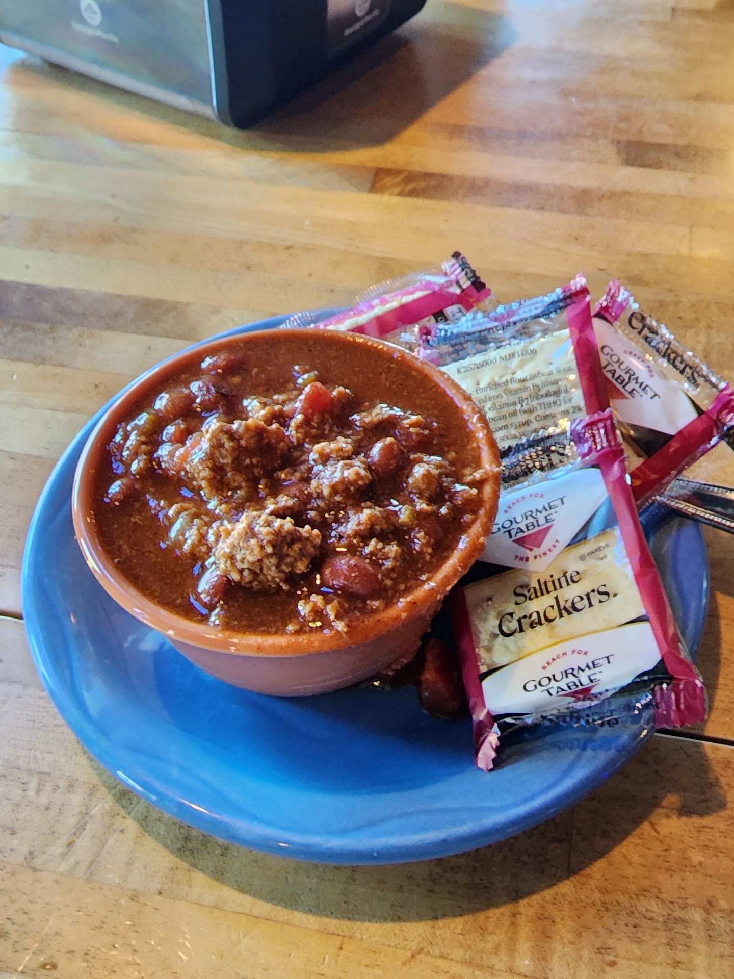 I was able to sample their homemade Poblano Cream soup and the chili. Both were fantastic! While it wasn't spicy or super-flavorful like Wendy's, it was nevertheless good!