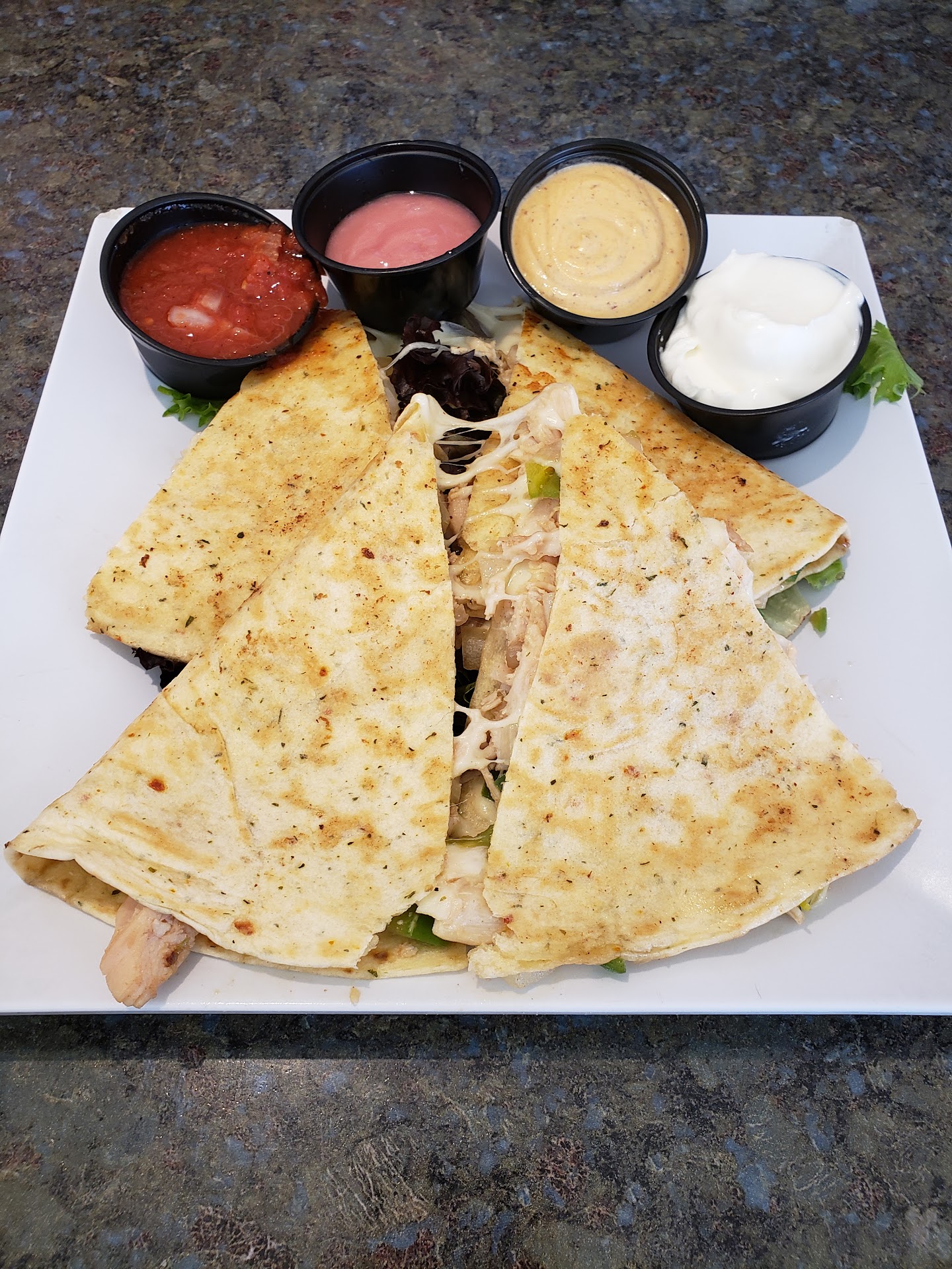 Chicken strips over $9, 4 pieces, for a second I thought my wife got a weird salad but it was the chicken strips laying on a bed of what looked like mixed greens. No sides.