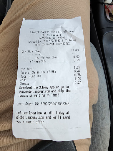 Read moreThis was my first time at the Waterloo Subway and I was very disappointed in the service. Morgan served me and she was very rude and pushy the entire time. I asked her if I could have a minute to decide what I wanted and she asked me 3 times, within 1 minute, what bread I wanted. She does not have good customer service skills. I hope my next experience...