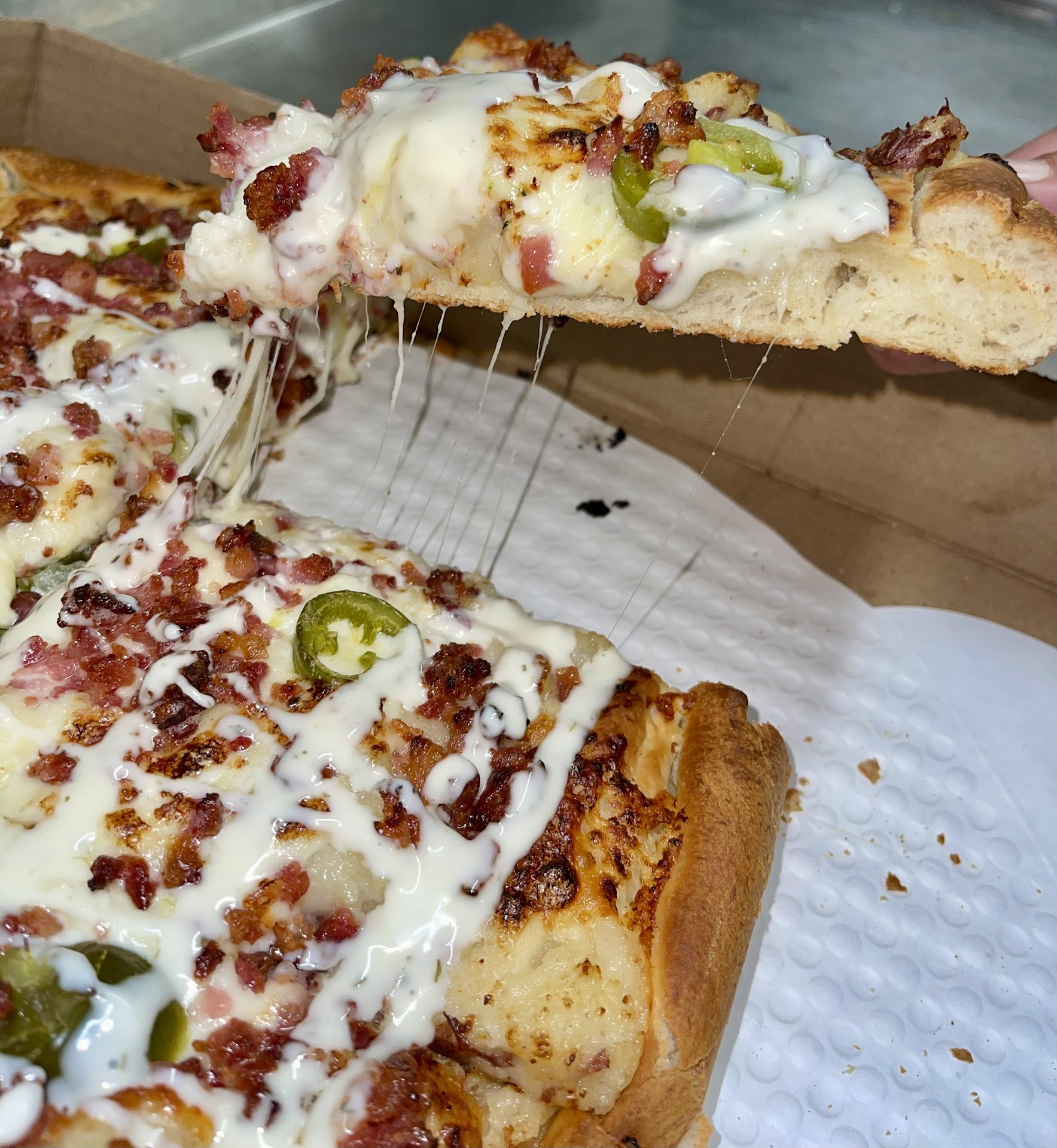 Ā Ā Ā Read moreEdit: We ordered a second time and whatever went wrong with the pizza the first time was completely fixed. Their pizza is like a beautiful hybrid of deep dish pizza and the thin crust pizza you'll find everywhere else around here, so it stands out from the other pizza joints in town. The veggies on their toppings taste really fresh which is a nice touch. Their buffalo wings are amazing.