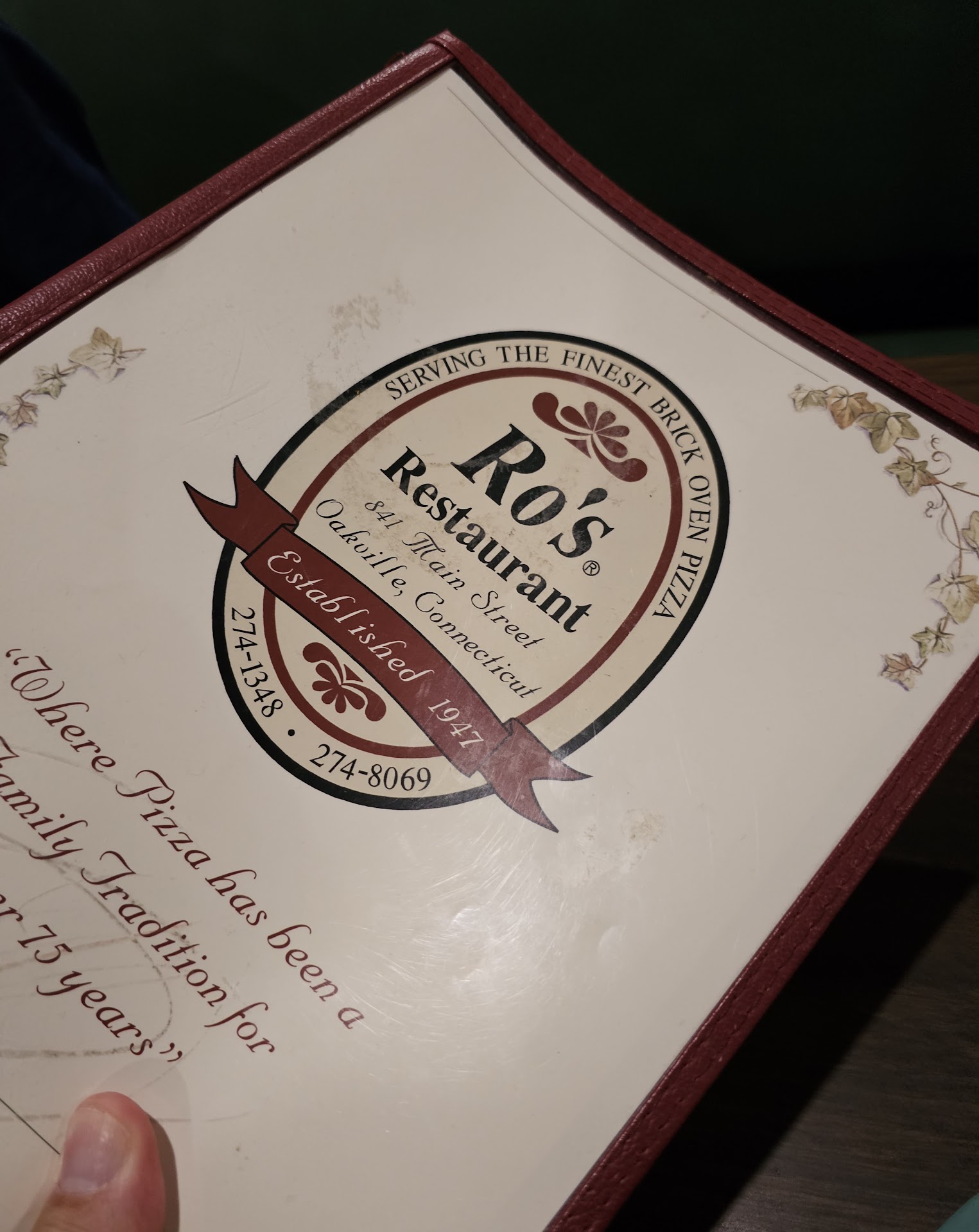 Read moreBefore going to Ro's especially for pizza you need to be in the mood specifically to go to Ro's for pizza. I'll explain; This isn't your normal New Haven style thin crust pizza. It's not thick like a Sicilian or Greek pizza. It's not simple like a cafeteria pizza on a Friday in school. (The best!)