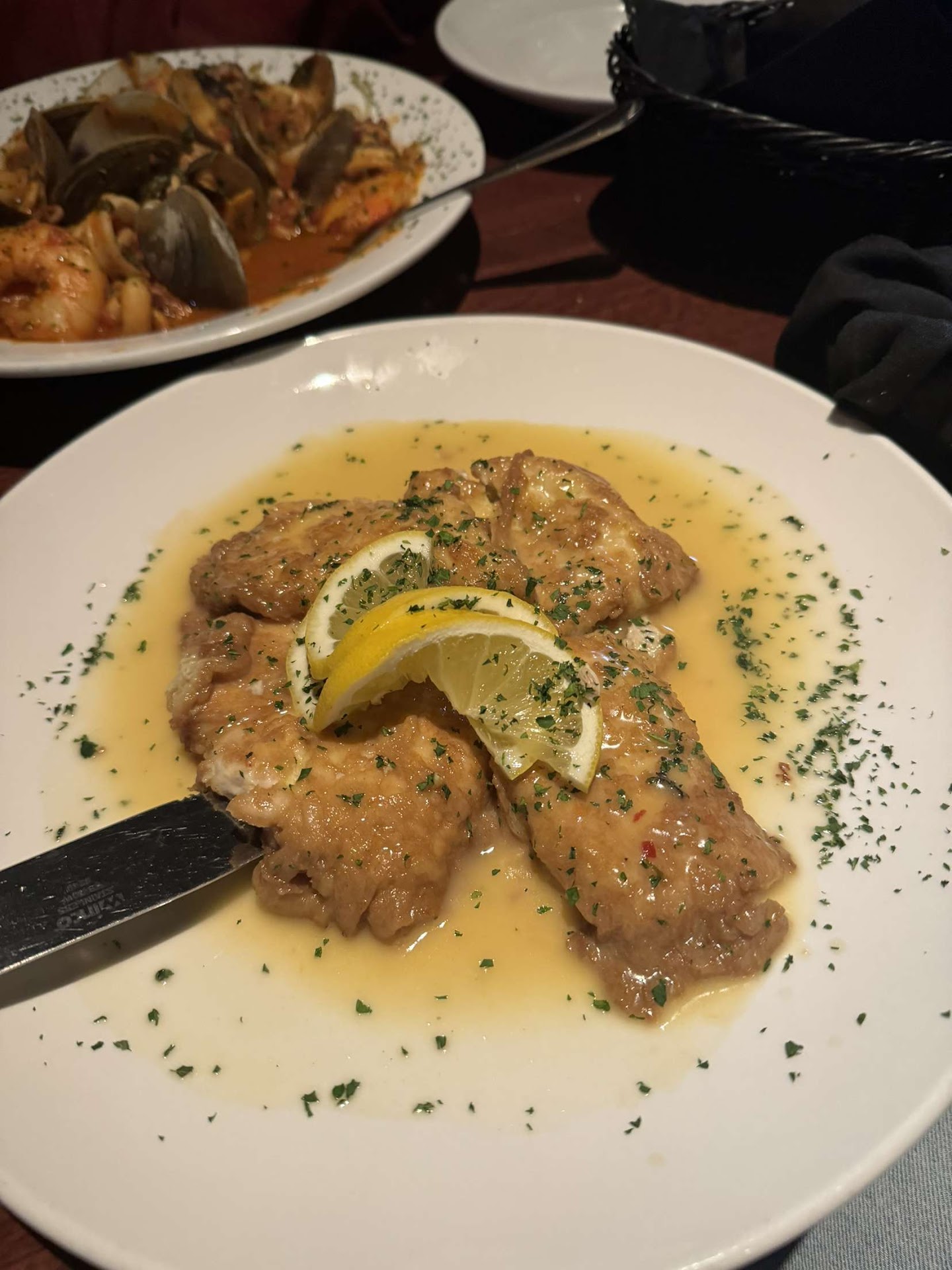 The Veal Milanese, breaded and pan fried, with sweet peppers requested over the hot ones and garnished with lemon, was also exceptional. My partner said in jest the veal was pounded so thin and flat, he thought a Cadillac SUV must have run over it!