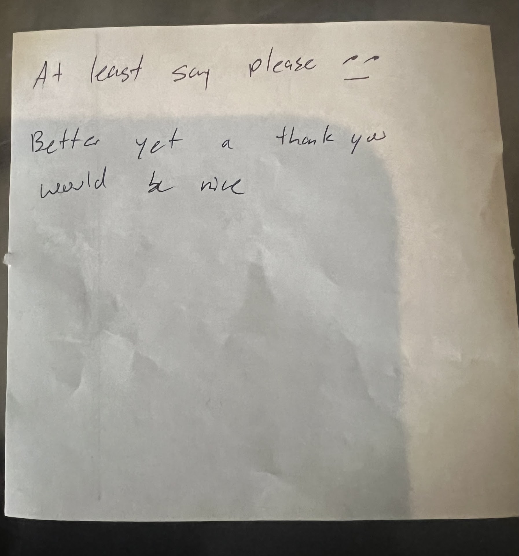Read moreNothing wrong with the drinks, wish I could say the same about the staff. Placed an UberEats order and put in description “more tea less milk” and I guess me trying to be efficient was so offensive that the employee felt the need to write me a note (photo attached). Not sure if they were trying to be funny or clever, bc it was neither, but they should’ve just kept their thoughts to themselves. It’s just a modification description.