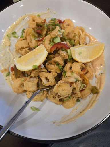 Read moreHeard good things about the Middle, I found it to be just OK. The food was alright. We started with the calamari. The breading was different. There was sauce served with it, but there wasn't enough to eat with the calamari. We then had the burger, salmon and mac and cheese. The burger was anything different than what you could buy and grill at home. And after ordering the burger with cheese the waitress said cheese came on the burger (not listed on the menu) so the burger showed up with no cheese. The salmon was ok. And the mac and cheese came out extremely hot, while the buttermilk fried tenders were cold. The cheese flavor had a hard time over powering the excessive breadcrumbs. As for the atmosphere, it's unique. Very modern. The bathrooms are very different. The women's room has a toliet seat painted with birds and a mural made of flowers. The men's room I can't even begin to describe the painting on the toliet and a painted mural on a wall. The service was OK. We only saw the waitress a few times and when asked for a refill on the soft drinks it took quite a long time, even with only few tables occupied. Granted they did open about a month ago, but the food quality just wasn't there for...