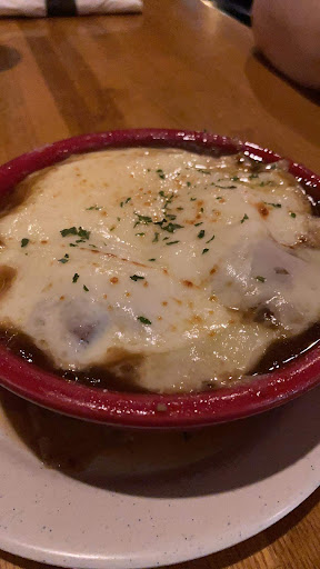 We've eaten French Onion soup from almost every restaurant that serves it and there have been good ones and ones that were inedible because of salt. Plus I make it once, every winter. It's a relatively easy recipe minus chopping all the onions. But even my recipe is a little time consuming due to caramelizing all onions and shallots, getting the low sodium beef stock, getting the mixture of cheeses (Emmentaler and Guyere') and toasting the bread I use to finally adding the Sherry before putting it all together. For anyone making it homemade, make sure you have a small cut in half potato beside your cooking pot. If after you add your spices (Himalayan salt, Bay leaves, ground pepper, Worcestershire sauce, etc... If you find it salty, you can put the potato inside and cook it on a simmer for a minimum of 20 to 45 minutes and then remove potato. Potatoes can be added to any soups that are too salty, they act as a salt-sponge. I mention the making of this soup because it's time consuming, so we appreciate a restaurant that serves it.