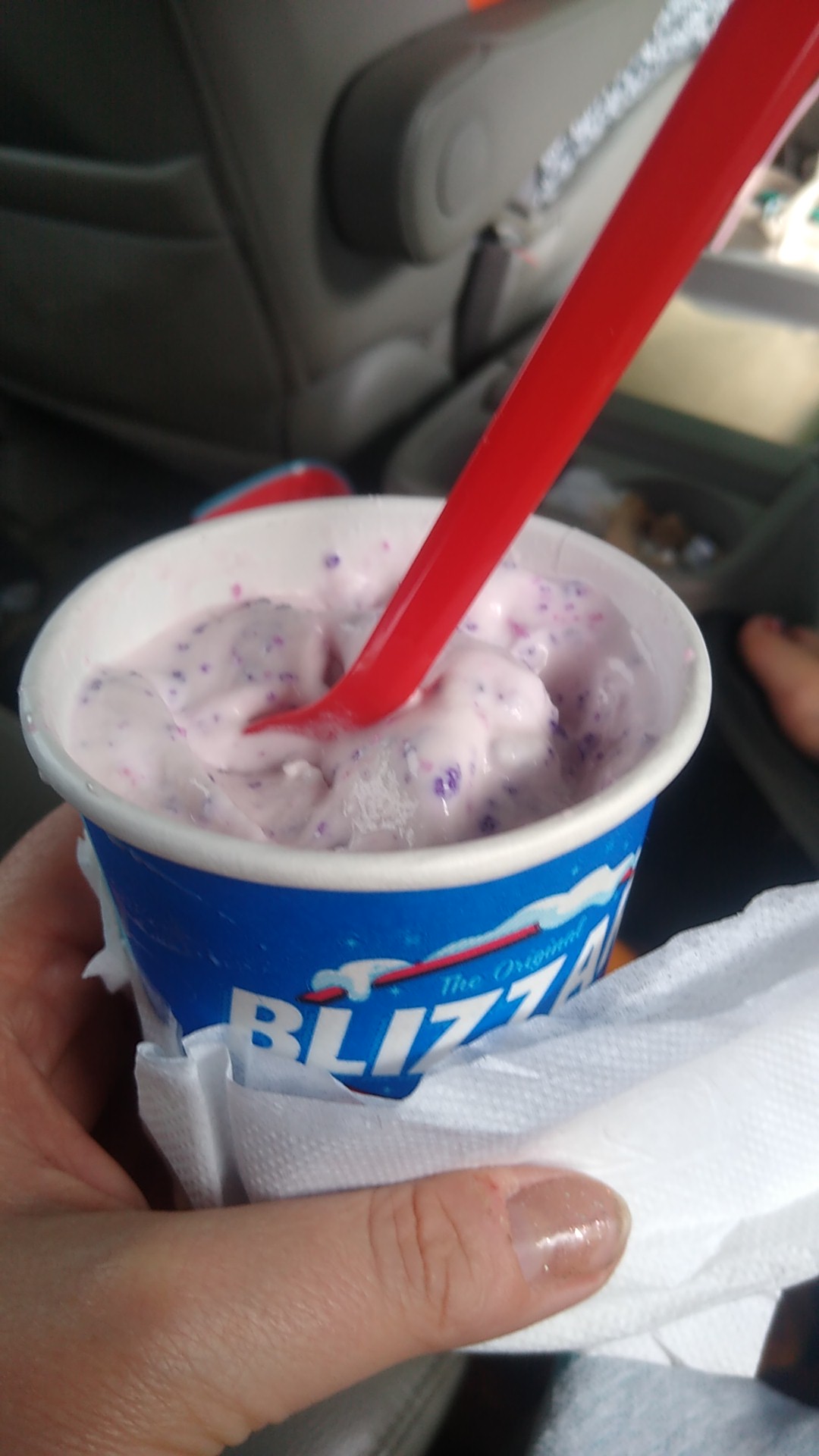 Read moreWe did a drive thru order today asking for one item to be a Reese's pieces blizzard. We pulled into a parking spot to eat our ice creams. My daughter's was made as a Reese's pieces cookie dough. Being a diabetic, she doesn't get many sweet treats and the added dough would be too much. I took it back in and was told by the manager she would make another one. Instead of doing that, she waited on 2 other drive thru customers and was going to wait on another when I spoke up and asked when she would redo mine. I do retail and people in store especially one that was unsatisfied, should have been first. The young man ignored me when I asked him to make mine before waiting on the walk ins. Highly dissatisfied. My granddaughter had to come in get more napkins because my treat was melting everywhere. I did get very loud because she was ignoring me and blizzard machines...