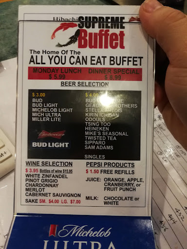 We just had a wonderful birthday celebration at Hibachi Supreme Buffet. The buffet was excellent. They had a separate banquet room where 47 of us all gathered for my dad's 95th birthday celebration. The owner and waitstaff were very attentive to our needs. We were also able to bring in our birthday cake! I would definitely recommend having your gathering here for any kind of celebrations. An excellent selection of Chinese and American Cuisine buffet. Very good food and with a large selection to choose from with many of your traditional Chinese dishes. You will also receive the buffet for free on your birthday! I definitely enjoy going here. I would recommend Hibachi Supreme Buffet. You...