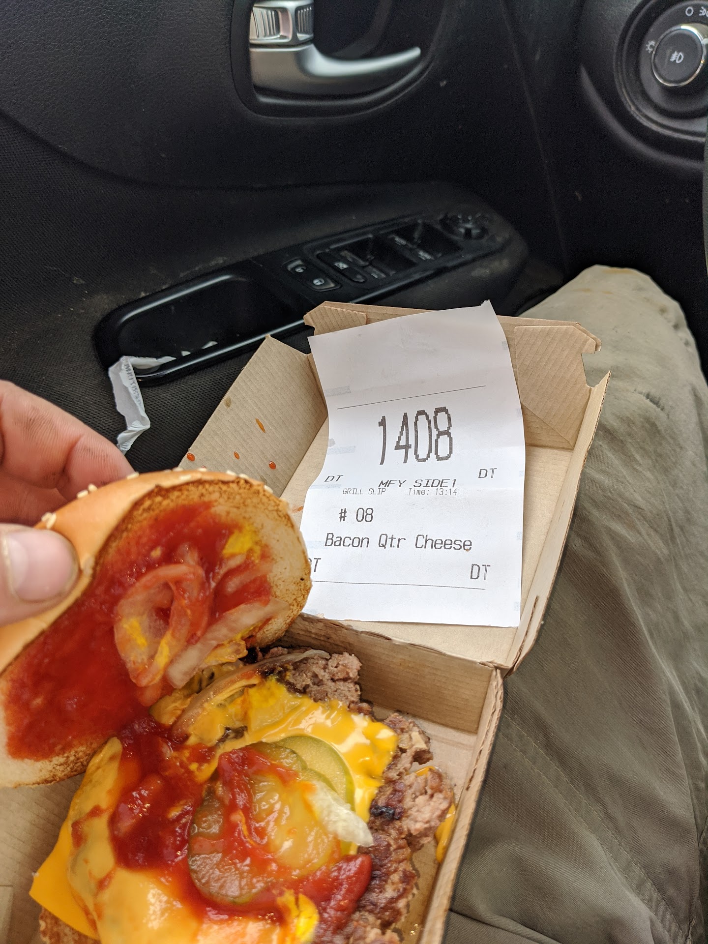 Read moreJust stopped here on my way home from work. I do semi-regularly. The wait was long without any movement, fine I guess. I asked for a specific type of pie and was told they were temporarily discontinued for the seasonal pie, I said "That's fine, do you have any of those?" They told me that they did, and so I ordered two alongside my sandwich with no pickles and 10 piece nugget with sweet and sour sauce. 10 minutes later when I get to the window to pay, I'm told there are no pies left, which is probably the third time this has happened to me, except I started asking them to check before I order to prevent this problem, anyway I tell them its fine again and just pay for the remainder of my order and leave, to find out they only gave me one sauce for my 10 piece as well. Really just and overall irritating...