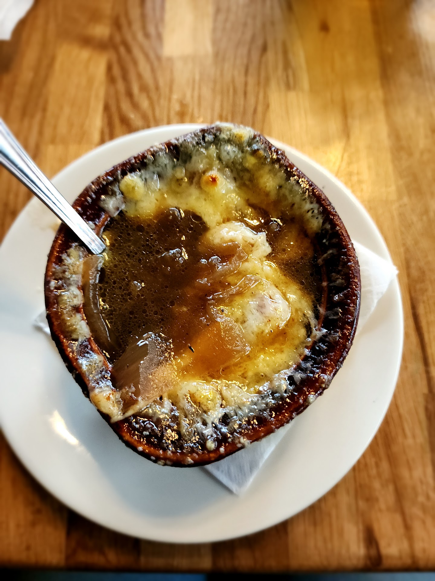 Read moreWent in here for lunch today with my wife and granddaughter. Not so good. My wife ordered calamari from the pretty limited menu, it came and was a terribly small order that was over breaded and way over cooked, was literally like eating rubber. Was also served with cocktail sauce , which I found odd and certainly wasn’t good. I ordered the onion soup, the soup wasn’t bad, but it wasn’t hot and although tasty and well made, not very appetizing. I also ordered the bbq chicken grilled pizza, I did not eat it as the chicken was really dry, the cheese was just glopped on very heavily, and even though it was a grilled pizza which which I am familiar with grilled pizzas this one had a burnt taste, a very burnt taste. It wasn’t burnt but had that flavor, have a feeling that it was something on the grill or previously on the grill that made the pizza taste so off. When I finally got the waitresses attention, and I was her only table I told her I couldn’t eat it and wanted to order something else. Now a couple things here, and I want to say the waitress was very nice and friendly but was at the bar during our visit and was hard to get her attention. Again she was very nice and very friendly. I ordered a bacon cheese burger, she took the new order, but did not offer to rectify in any way the bad pizza experience I had. I paid for the pizza. I asked for onion rings instead of fries and when the burger came the plate had like 5-6 onion rings on it. I thought this to be a very small amount and considering I paid an extra charge for them I was a bit disappointed. The burger itself had a hard ciabatta roll instead of a burger roll which I found to be hard to chew and a bit stale, it was to much bread for the burger. Having said that the burger itself was very good indeed, was cooked medium like I asked and had a good flavor and was juicy. I will likely look for another place to eat when in...