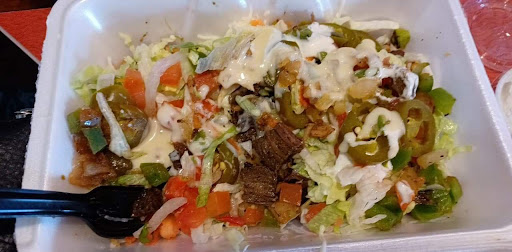 Portion sizes are more than sufficient! The spicy chicken burrito was fantastic-- not to spicy not to mild! I topped my selection sigh black beans, rice, Pico de Gallo lettuce, cheese including shredded and queso (extra cost for both.) My husband enjoyed steak nachos also opting for the double cheese and extra costs and both of us enjoyed a regular sized drink! Our cost was around $25 but the quality allowed me to eat 3 small meals total between what he had left and what I had leftover! Staff was young, mostly highschool aged kids, but absolutely friendly, proficient, and knowledgeable about Ingredients and menu options. We were through the ordering line and payment process quickly and on our way to happy and full belly's as quickly as possible! Thanks y'all...