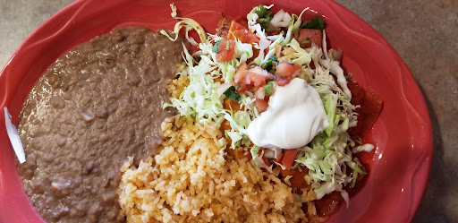 For our meals, we both ordered an enchilada dish. Each dish came with 2 enchiladas, rice, and refried beans. I ordered the Enchiladas Casera; one enchilada was filled with shredded beef while the other was filled with cheese. These were topped with red sauce, shredded cabbage, salsa, and sour cream. My wife's enchilada dish was the Enchiladas Verde. Both were filled with grilled chicken and topped with verde sauce and melted cheese. Cabbage, sour cream, and guacamole were served on the side.