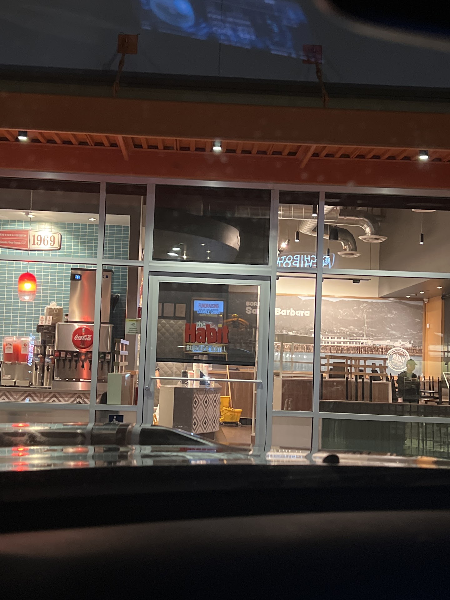 My husband has been to Habit several times. I was working nearby so decided to eat there. I used the kiosk to order and decided to eat there. After waiting a while my order hadn't come out. A person who ordered at the same time was still waiting. I saw a staff member lock the door. I finally found out that the order system was down and they were filling orders the old fashion way... by tickets. I went up to the counter and told her that I would now like my order to go since I didn't have enough time. She took care of it. Burger was good but they forgot the garlic sauce for the fries.
