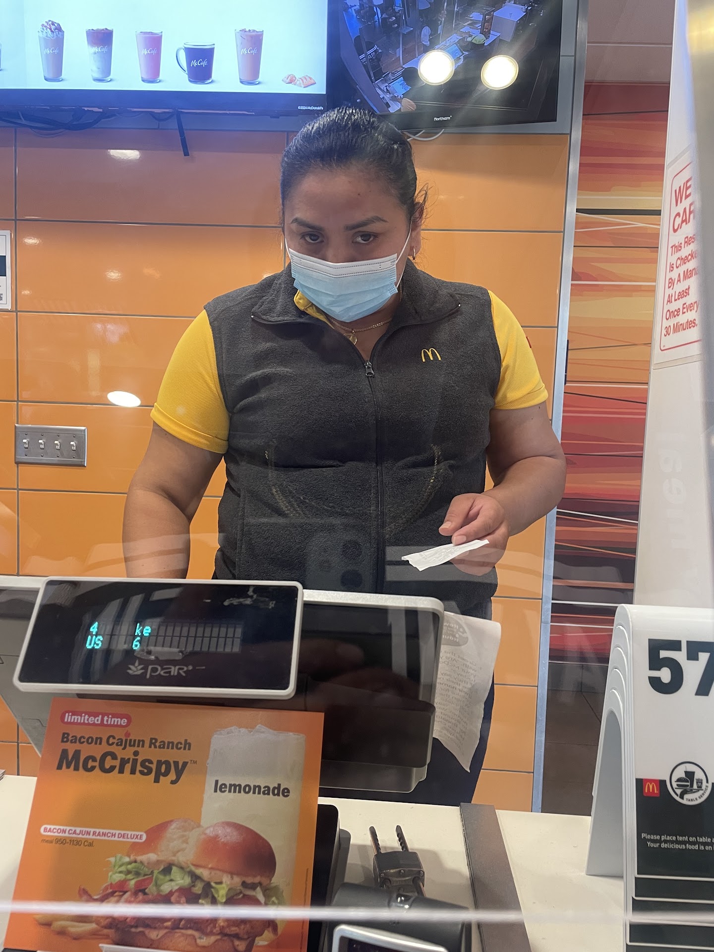 Ā Ā Ā Read moreQuality, Cleanness, and Service. I used to work for McDonald's, and they taught me about these goals. My visit did not match all of them. I had to place my order on a Screen by myself, the machine is not as clear or easy as the register used to be when I worked there.