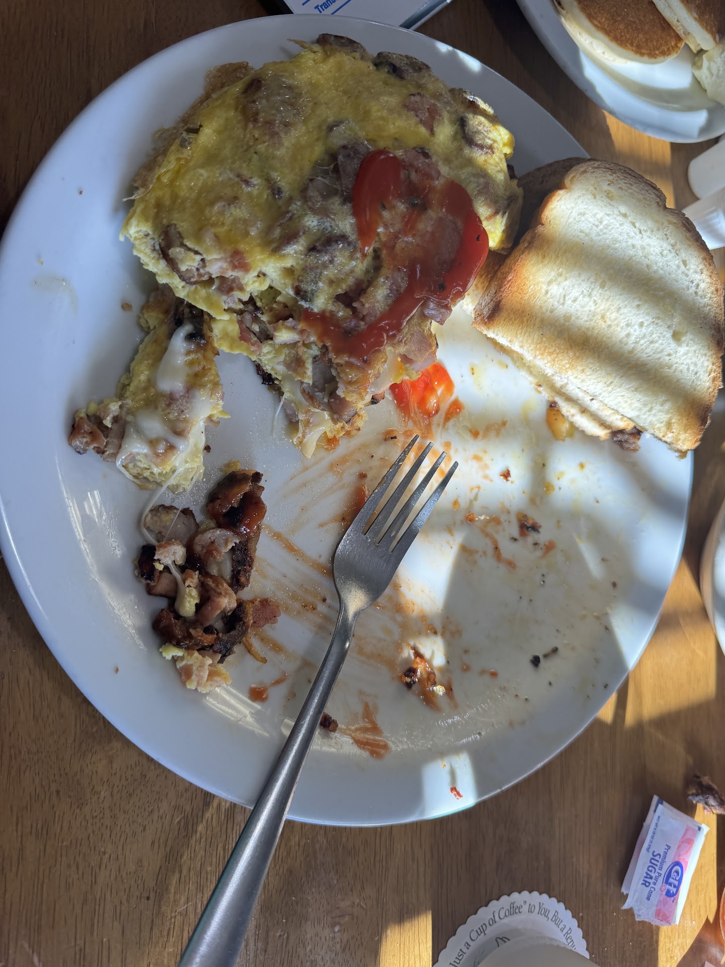 Read moreI went today for lunch, as my mom and I went there last month for breakfast and it was delicious. I ordered the half sandwich and soup. My mom ordered a bowl of soup. Both our soups were brought out cold. I had to ask them to be warned up. My bread on my half sandwich was not even toasted. It look like they literally just slapped two cold sourdough bread in between turkey and lettuce and tomato. I didn't want to complain about that as I already complained about the soup not being hot. Fast forward to when it was time to go. I ordered an iced tea and ask for a cup to go. When the waitress came back with my cup to go cup she said "We have to charge $0.25 for the cup to go". I said okay. I then looked at the bill they charged me $3.50 for iced tea Plus $0.25 for the to-go cup. I didn't want to argue, I just will NOT be returning to the restaurant. The food was not good, service not good, dirty...