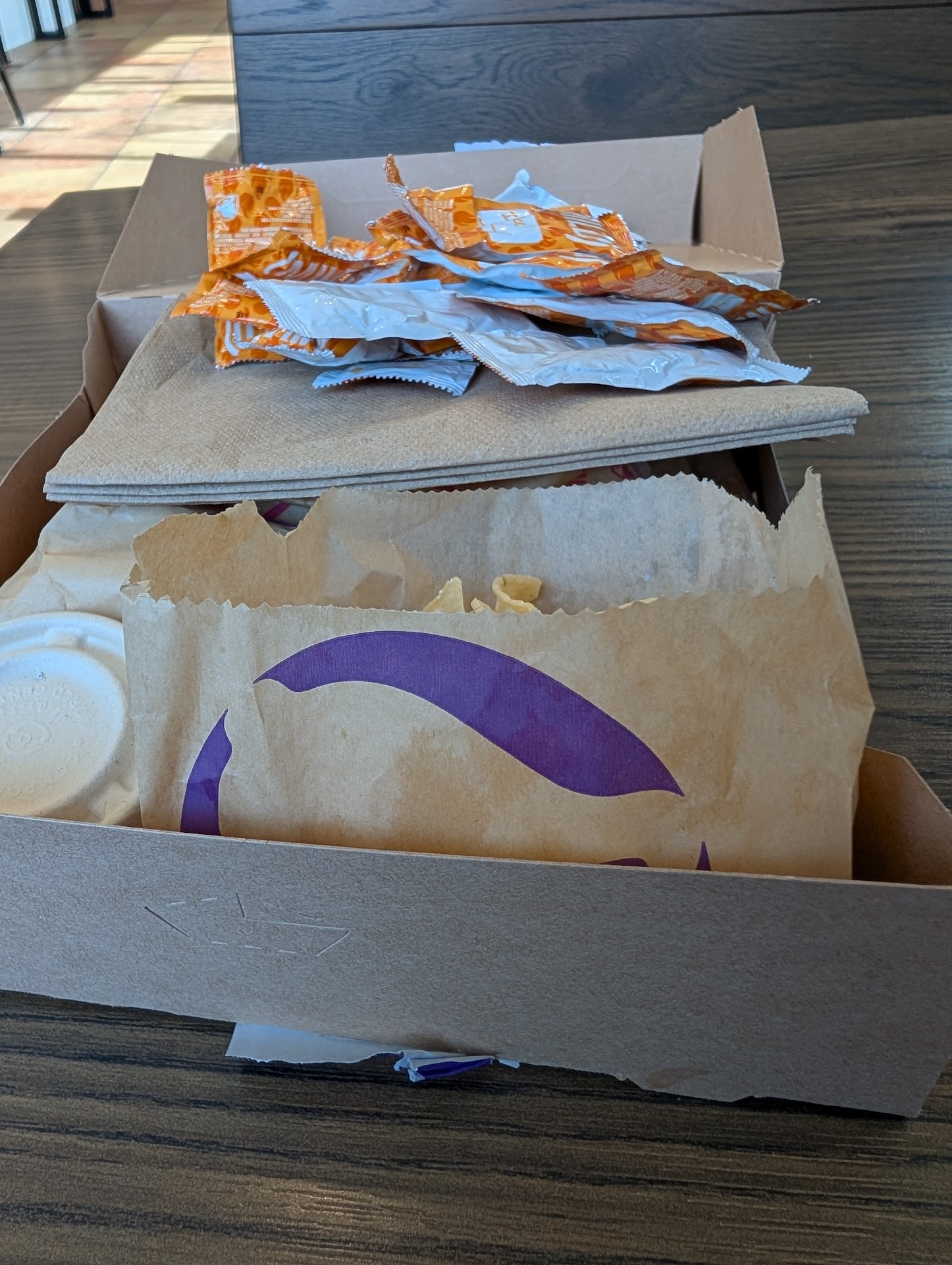 This pertains specifically to this morning however. Nothing quite like repeating your order 4 different times, and still getting the completely wrong order. It wasn't past breakfast time, yet somehow I ended up with a regular crunchwrap instead of a breakfast crunchwrap. I was charged the correct price for a breakfast crunchwrap, so I don't think it was the cashier who got it wrong (didn't grab a receipt and the screen at the drive through was not working). It could have been though being he had to ask multiple times what my order was again, but the price being correct makes me think that wasn't it. But talk about getting something I didn't want at this time, and of course being a drive through I only discovered the mistake after...