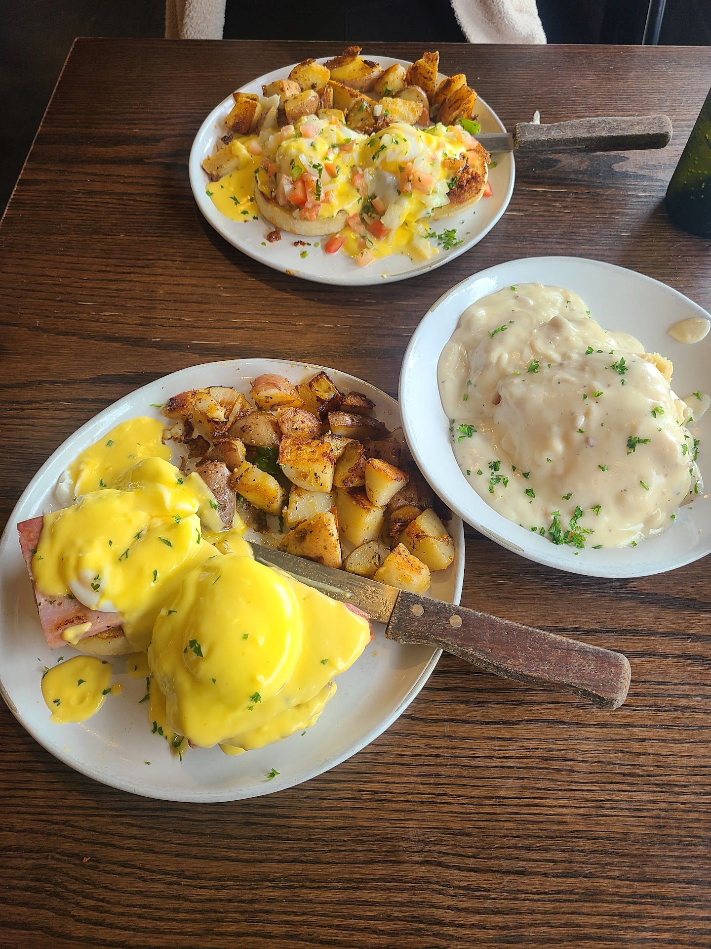 My wife went with the Farmhouse Breakfast, and it did not disappoint. It came with fluffy scrambled eggs loaded with melted cheese, crispy diced potatoes that were well-seasoned and browned beautifully, and a country-style biscuit smothered in creamy sausage gravy. It was hearty, flavorful, and the kind of meal that sticks with you in the best way. The portion sizes were generous, which made it feel like you were really getting your moneyâs worth.
