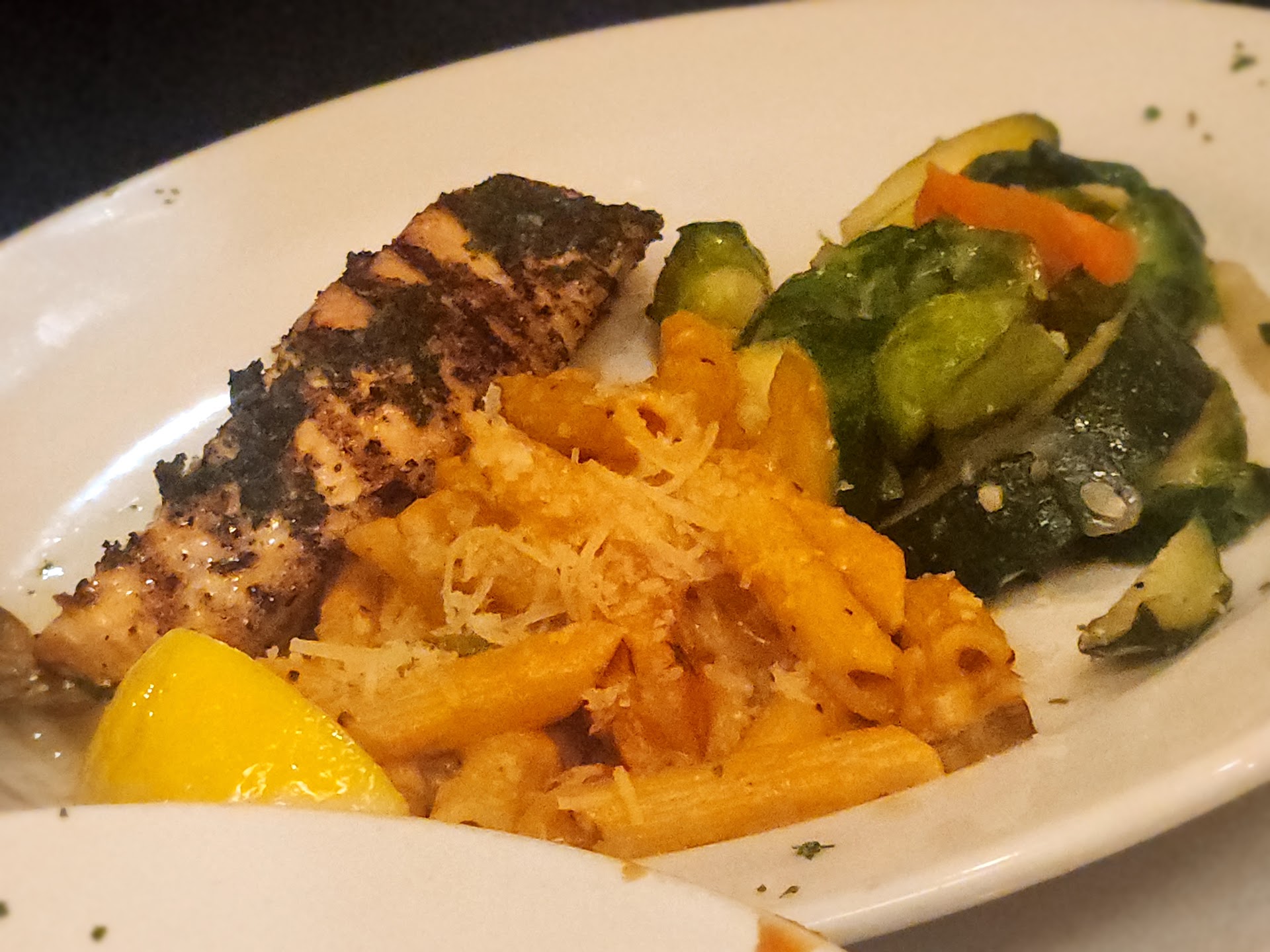 For our main courses I ordered scallops scampi style, and my boyfriend ordered the chicken marsala. The scallops were perfectly cooked and scallops are very easily ruined but they were done perfectly, however the "scampi style" was a bit overdone and the scallops were basically drowned. For the sides I got veggies which were meh, and the pasta which was very good. The chicken marsala had alright flavor, however the chicken was heavily overdone leaving a very dry chewy chicken.