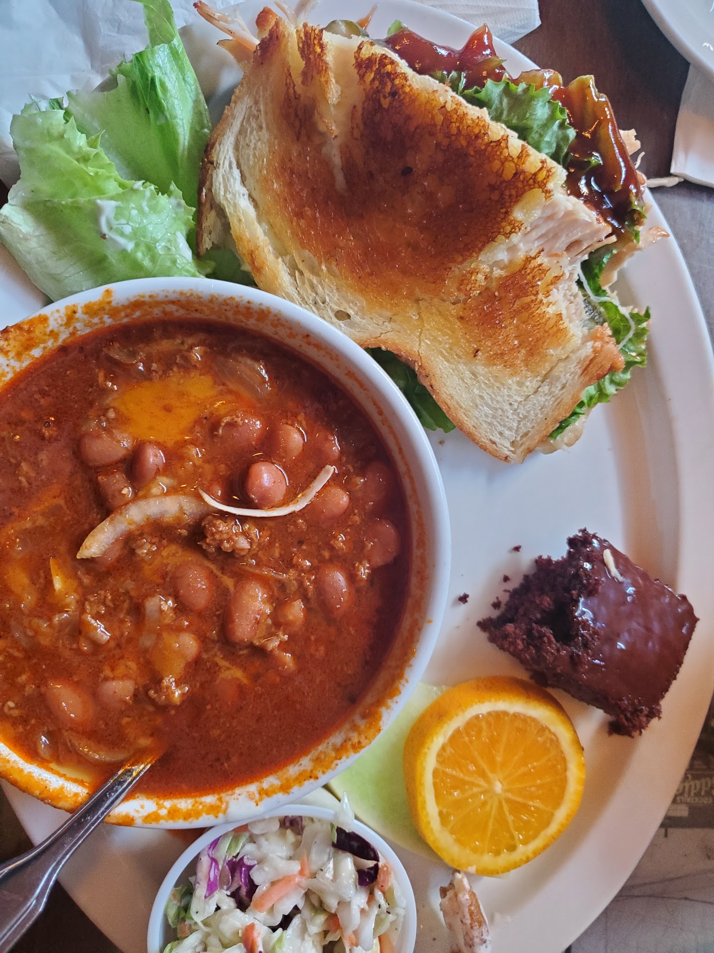 The inner tumult about whether to order dessert or not can easily be avoided here. As they provide diners a small slice of chocolate sheet cake with every plate. Not a huge amount, but enough to whet your appetite and appease the sugar monster within―for now... 4*