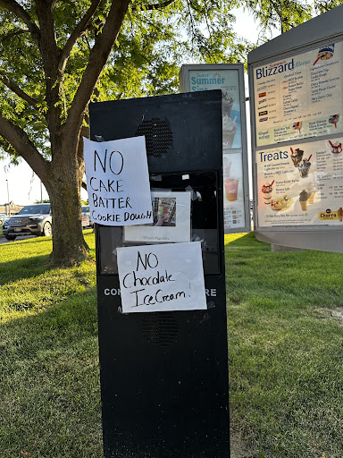 Completely disrespectful and horrible customer service and GROSS that they wouldn’t rinse between different flavors of blizzards. Quite sure the dept of health requires a little more effort.