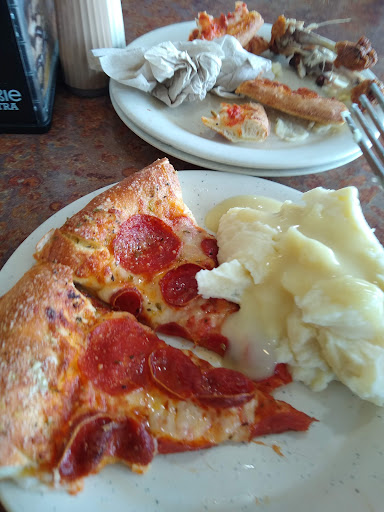 They turned off the dessert pizza heat lamps and put the dessert pizzas in with the regular which means decreased space for actual pizza. The selection of actual pizza was weird stuff. There should always be at least a couple simple, basic options available on a buffet like pepperoni and cheese.