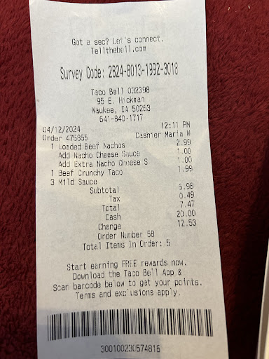 If I could give this place 0 starts i definitely would. I had pulled into the drive thru around 9:00pm. The guy taking my order was very unprofessional and not happy. He gave me attitude & just seemed like he did not care. (mustâve had a bad day). I get we all have bad days but do not take it out on the customers. You work in customer service/fast food. You should know better. You signed up for the job đš Anyways, i let it slide & kept ordering as he kept giving me attitude. I then pulled up to the window to proceed to pay. He then gave me attitude because apple pay wasnât working so i proceeded to try again. It all worked out in the end. He gave me my drinks and then couple minutes later the food came out. He didnât ask me if i wanted a receipt or any sauces etc. Now knowing when going to taco bell or any fast food place or any customer service place they always ask if you want a receipt & they always ask if u need any sauces. Was never Asked. Now, thats part of ur job is to ask the customers if they need any of those things. Anyways, thats besides the point. I then left unhappy because i wasnât treated like a human. I then called the waukee taco bell and asked if there was a manager on site and he proceeded to cut me off before i could finish my sentence and said âI am the managerâ (with an attitude). I then proceeded to explain my issue with his employee that was taking orders at the drive thru. Cuts me off again and says âwell i donât take complaints over the phone, you are gonna have to do that online.â Okay so then i proceeded to give him the same attitude back because not one person has been nice about the situation. He then said âOkay weâll have a good nightâ & HUNG UP THE PHONE ON ME. now iâve worked in customer service before & I know one thing is you donât hang up the phone on customers even if you donât know how to handle a situation. Iâm not sure who it was but he claimed to be the manager on duty at the time i called. I would not recommend this place for the customer service at all. I am very disappointed and yes i did contact corporate. đ now have a good day richard(the cashier)& whoever ur manager is that doesnât know how to act...