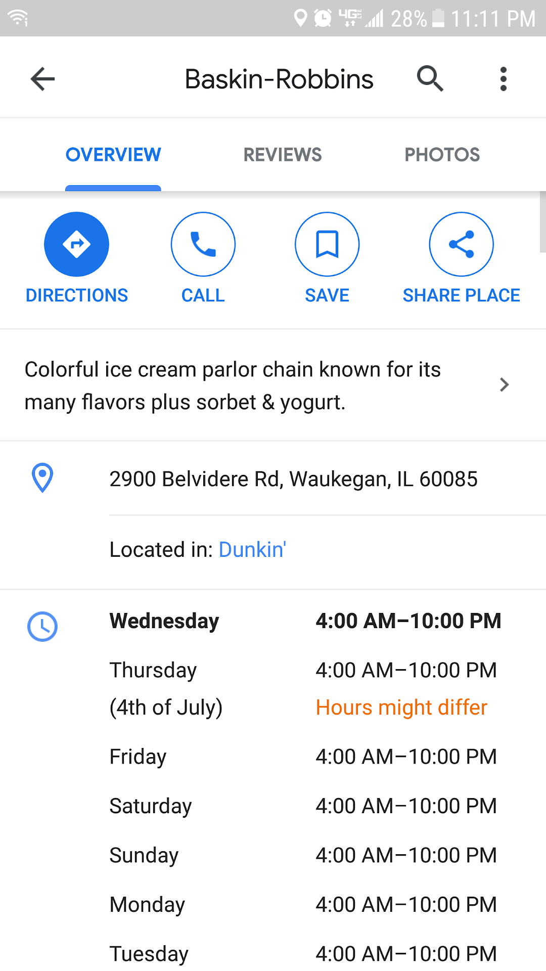 Read moreI was there at 9:40pm and I ordered a medium cappuccino blast, the lady told me Baskin was close. I asked her why and she said Baskin closes at 9:30pm when the hours of operation says at 10pm. I used to work for a Dunkin/baskin and crew will say the same thing because they were lazy to prepare the blasts. It’s like the food, you can order food any time but crew just lazy to prepare it and they say kitchen is close. It’s obvious this chubby chick was lazy to do her job but oh well you’re losing business...